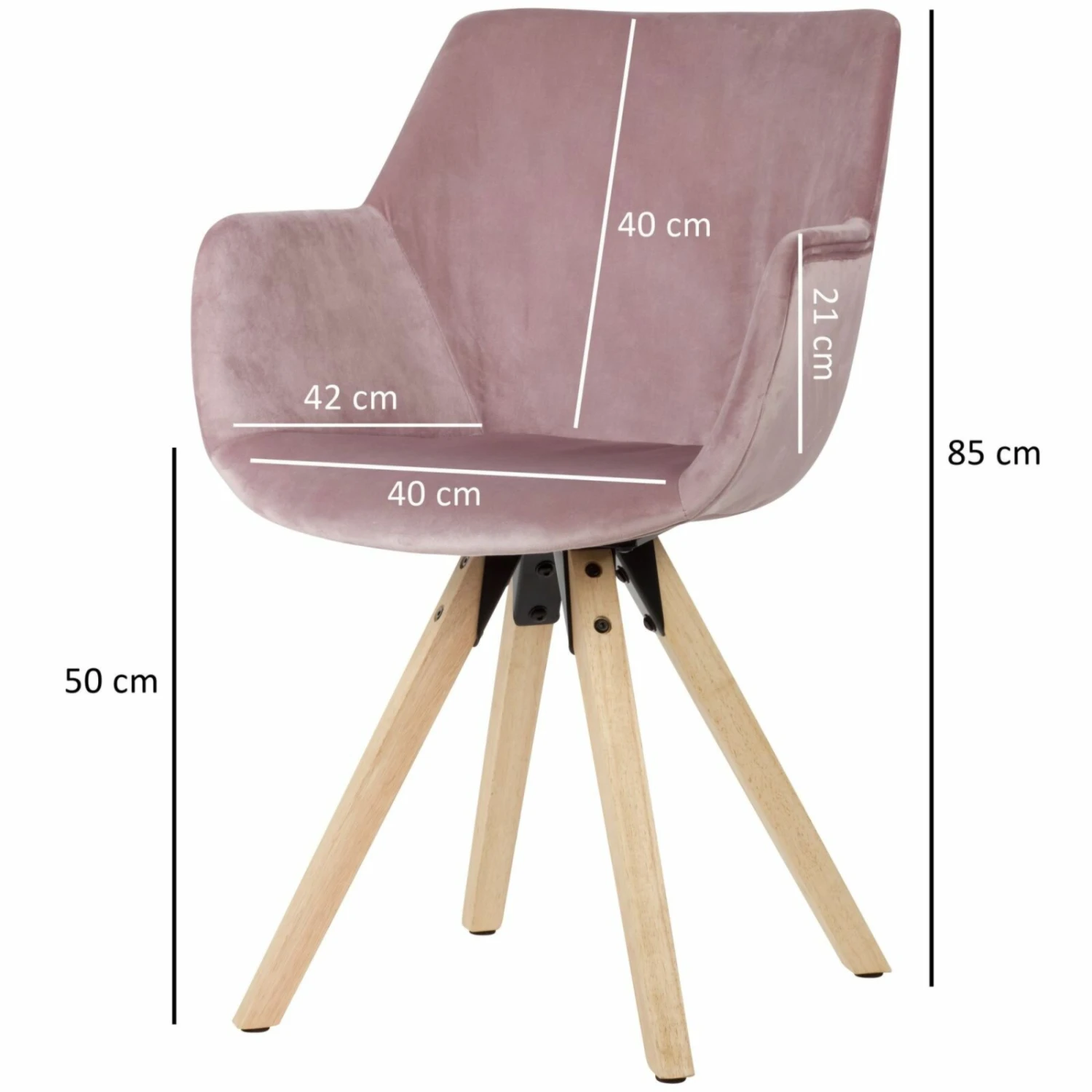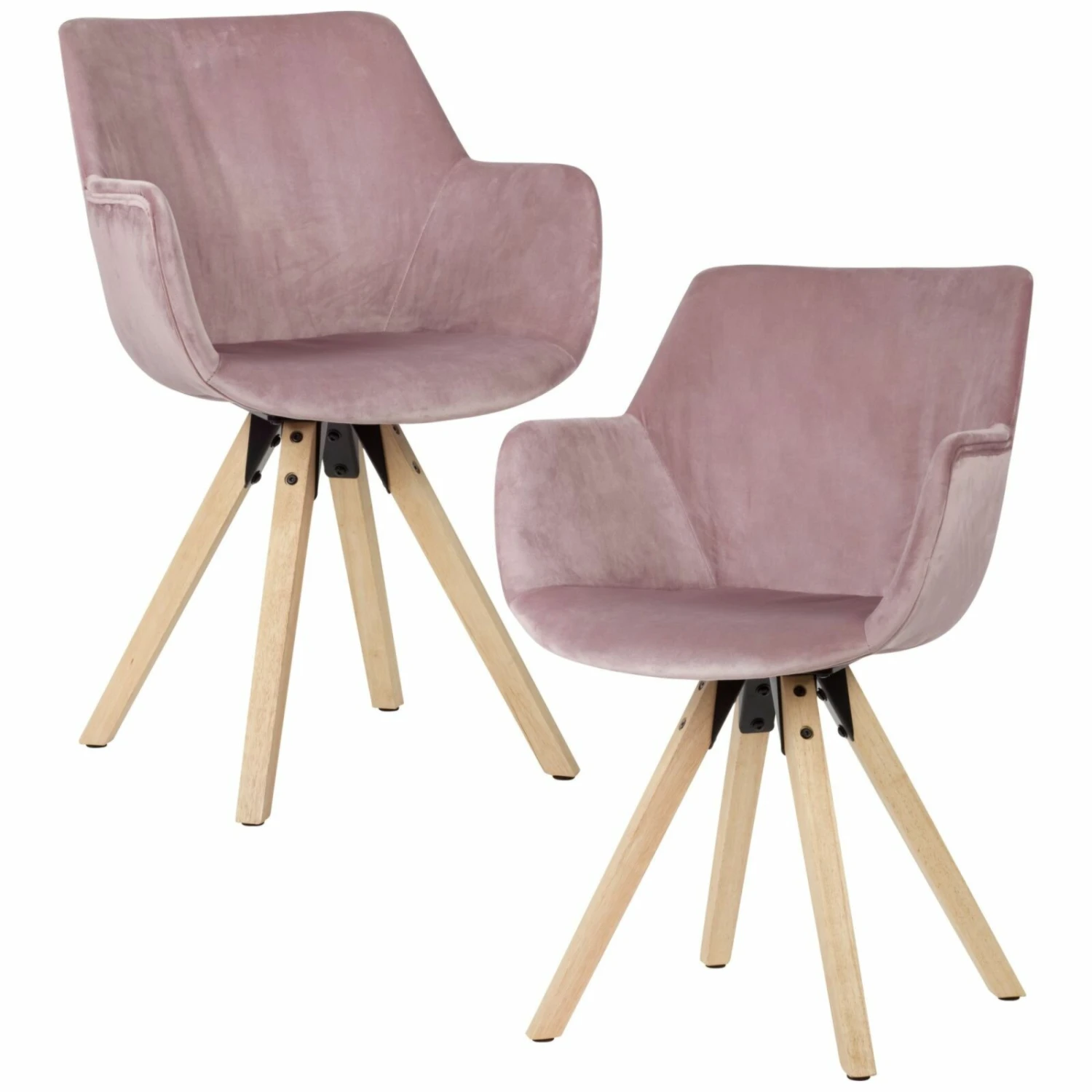 Ein gemeinsames Essen schmeckt in gemütlichen Stühlen noch besser. Bei diesem Polsterstuhl mit Armlehnen werden Sie Dank des angenehmen Komforts nicht mehr aufstehen wollen. Das Set, aus zwei Stühlen, können Sie mit skandinavischem Flair genießen. Die Sitzschale ist mit einem hautsympathischen Samt in Rosa bezogen, der in einem schönen Kontrast zu den naturfarbenen Beinen steht. Die Beine sind aus massivem Hevea Holz und daher sehr stabil, was zu einer maximalen Belastbarkeit von ca. 100 Kilogramm führt.