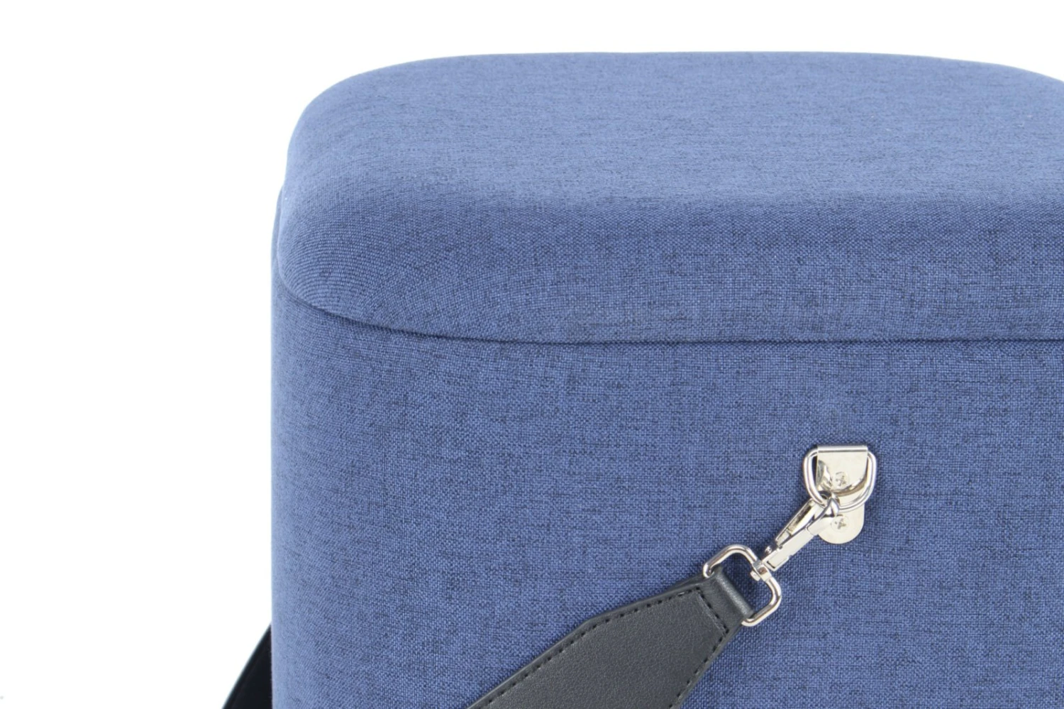 Diese dunkelblauen Hocker kommen im 2er-Set zu Ihnen. Der eine ist etwas größer als der andere. So können diese ineinander gestapelt und platzsparend verstaut werden. Auch kann der Innenraum als zusätzlicher Stauraum verwendet werden. Der Bezugsstoff ist aus Polyester und somit robust und strapazierfähig.