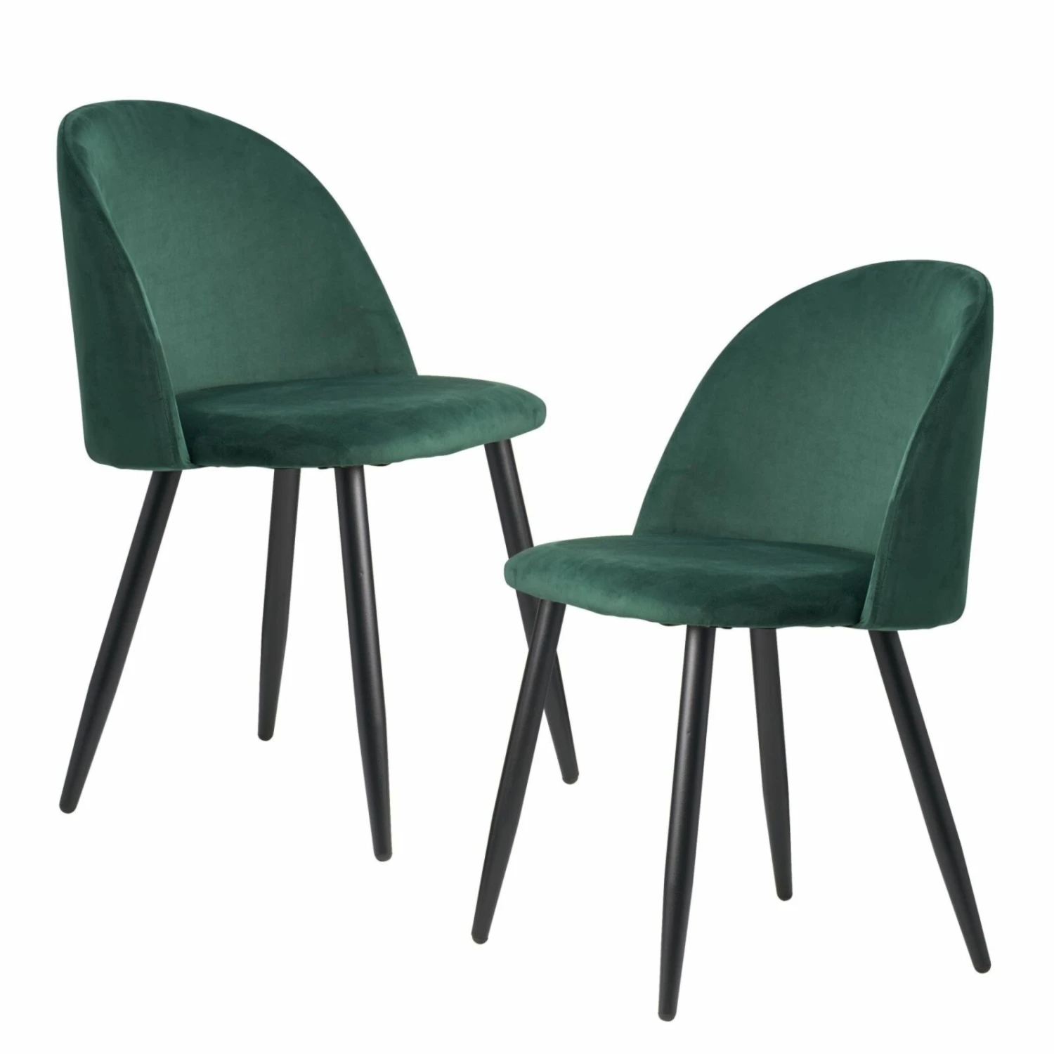 Im dunklem Grün schimmert das edle Samtvelours auf dem Esszimmerstuhl im skandinavischem Design. Die angenehm dicke Polsterung sorgt für Entspannung. Die Kunststoffkappen am Fußbein verhindern das Quietschen und Verkratzen des Bodens.