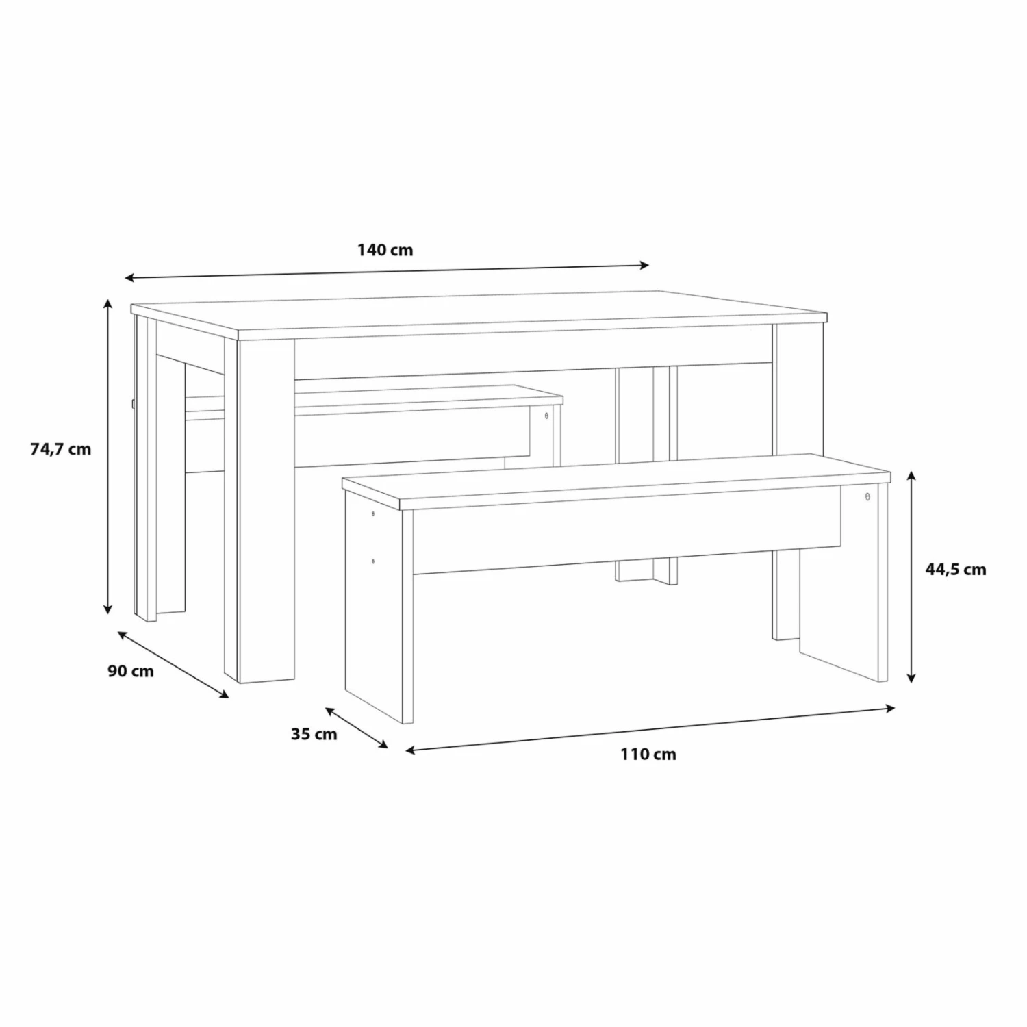 - Maße Tisch: BxHxT ca. 140 x 74,7 x 90 cm