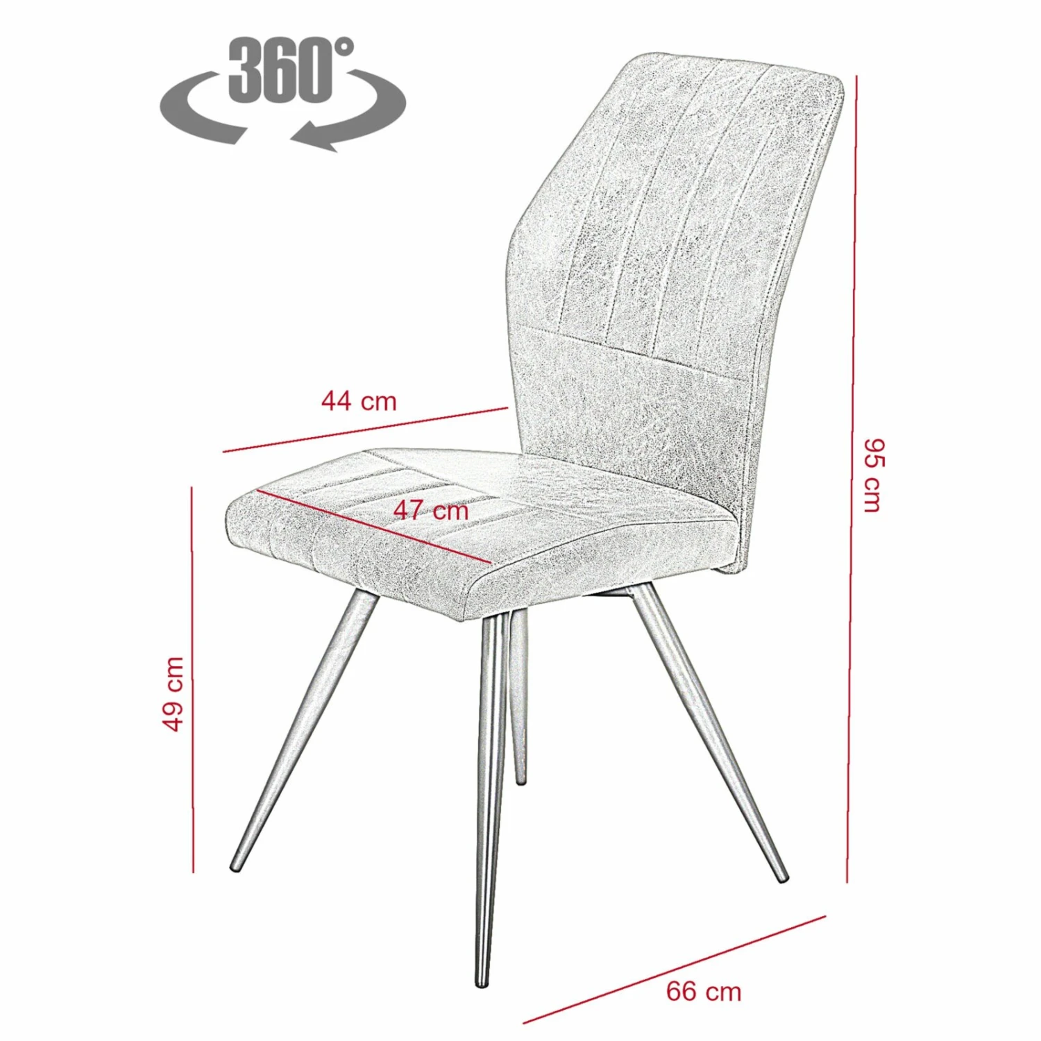 Dieses 4er-Set Schwingstühle in Vintage-Optik sorgt für einen frischen Wind in Ihrer Küche oder Ihrem Esszimmer. Die Sitzschale der Stühle ist dabei mit Steppnähten gepolstert. Die Stühle können mit einem Maximalgewicht von circa 120 Kilogramm belastet werden und um 360° gedreht werden.
