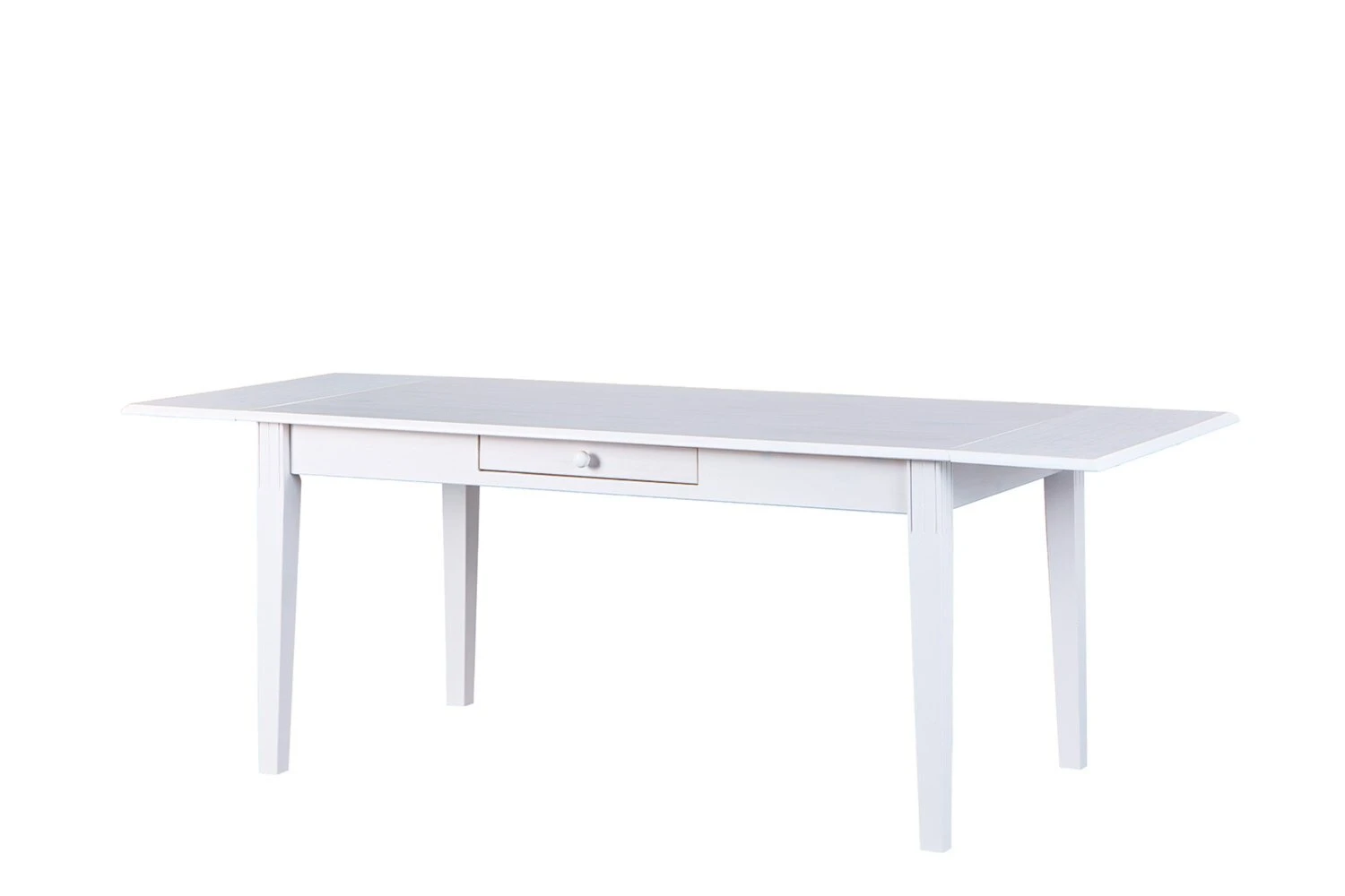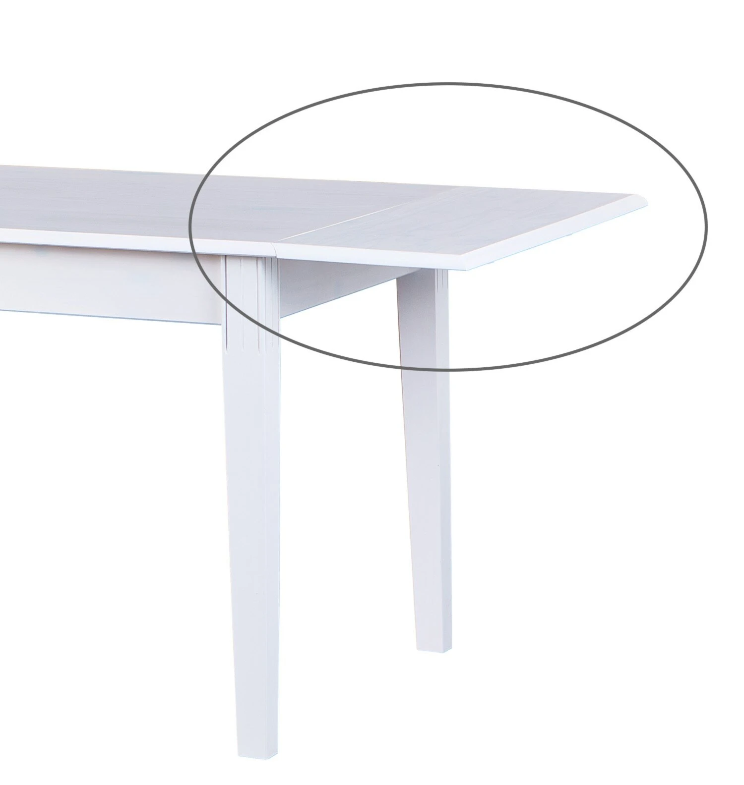 Der Westerland Esstisch kann durch die Zusatzplatte erweitert werden, so dass mehr Gäste Platz nehmen können. Durch das weiß lackierte Massivholz scheinen die Maserungen des Massivholzes hervor. Dadurch bleibt der natürliche Charakter des Massivholzes erhalten.