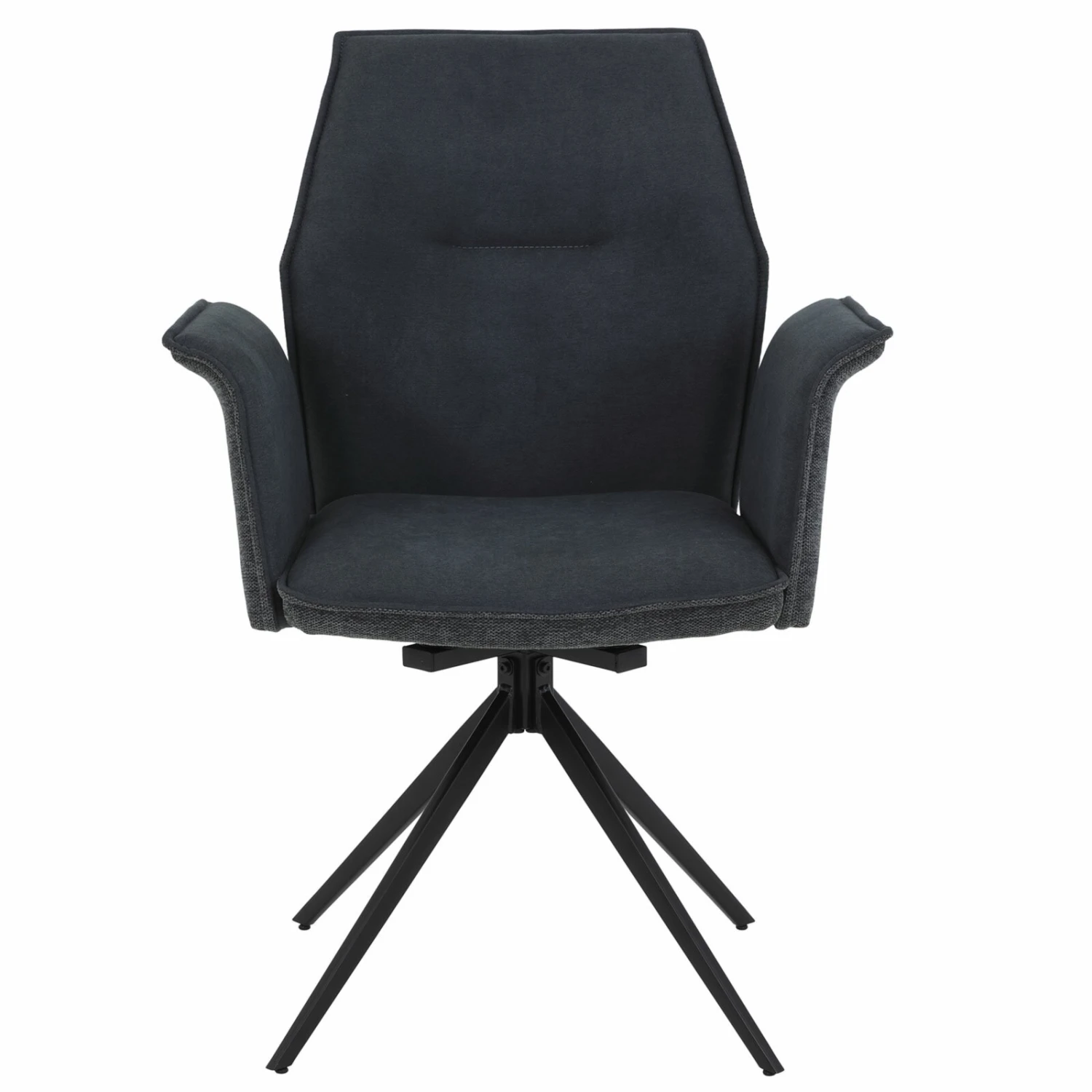 Dieser Armlehnenstuhl in Anthrazit und dem schwarzen Gestell aus Metall überzeugt durch seine Optik. Durch die dunkle Farbe ist dieser Stuhl die perfekte Sitzgelegenheit für den Essbereich. Mit einer Höhe von etwa 49 cm hat der Armlehnenstuhl eine ideale Sitzhöhe.