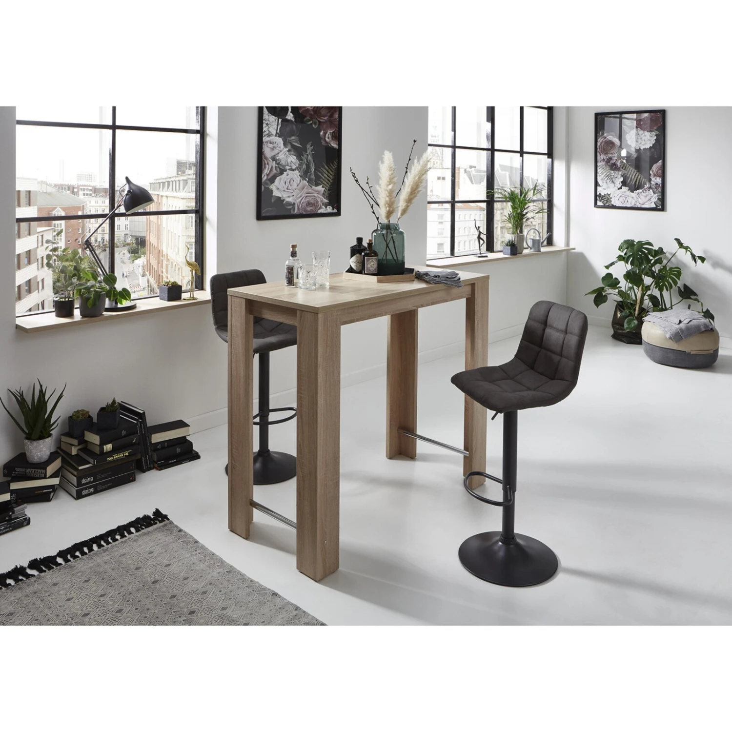 Genießen Sie den Abend mit Ihren Freunden und nehmen Sie kühle Getränke an diesem etwa 108 cm hohen Bartisch zu sich. Durch zwei chromfarbene Metallstreben an den Winkelfüßen lässt es sich entspannt stehen.
