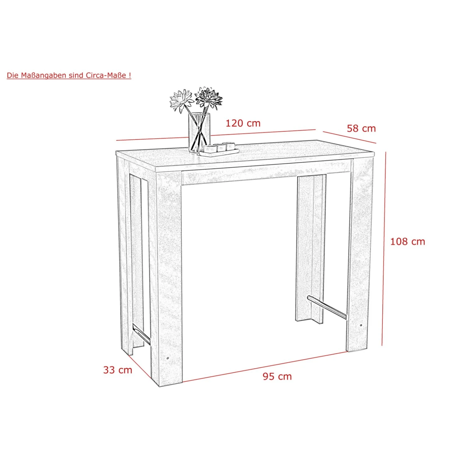 - Maße Tischplatte: BxHxT ca. 120 x 2,2 x 58 cm