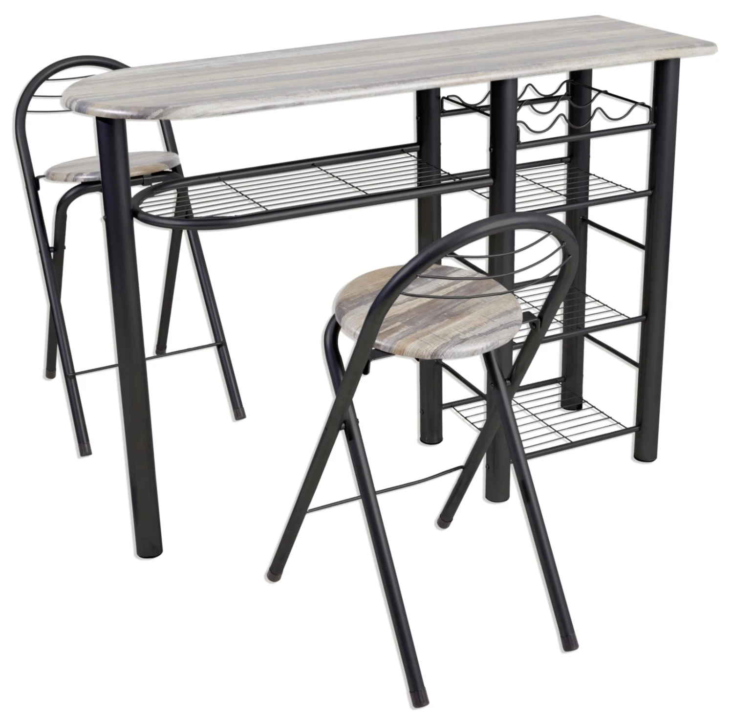 Die Bartischgruppe eignet sich besonders für kleine Wohnungen. Kommen Sie hier mit Ihren Freunden an einem gemütlichen Abend zusammen und profitieren Sie von den zusätzlichen Ablagefächern und dem Flaschenhalter. So können Sie Vorweg alle nötigen Utensilien bereitstellen und ohne lästiges hin- und herlaufen Ihre Gäste bedienen.