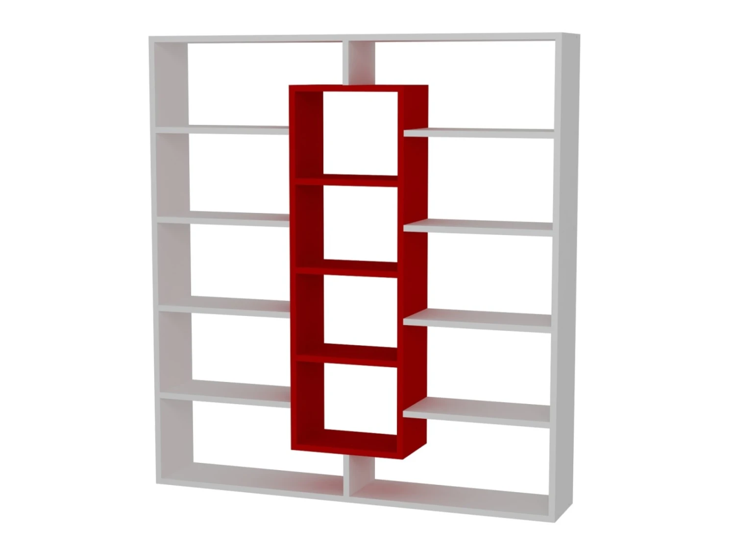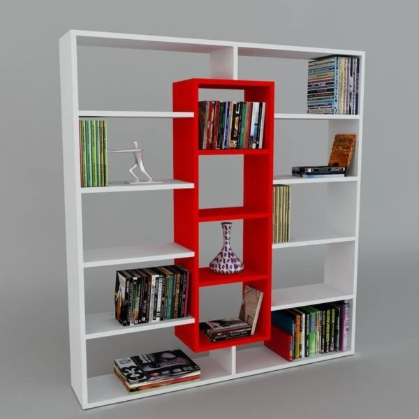 Mit diesem modernen Bücherregal finden Ihre Bücher und Wohnaccessoires reichlich Platz. Gut platziert, können Sie es, aber auch als Raumteiler verwenden. Der klassische Farbauftritt in Weiß-Rot lässt sich hervorragend mit vorhandenen Wohnstilen kombinieren.