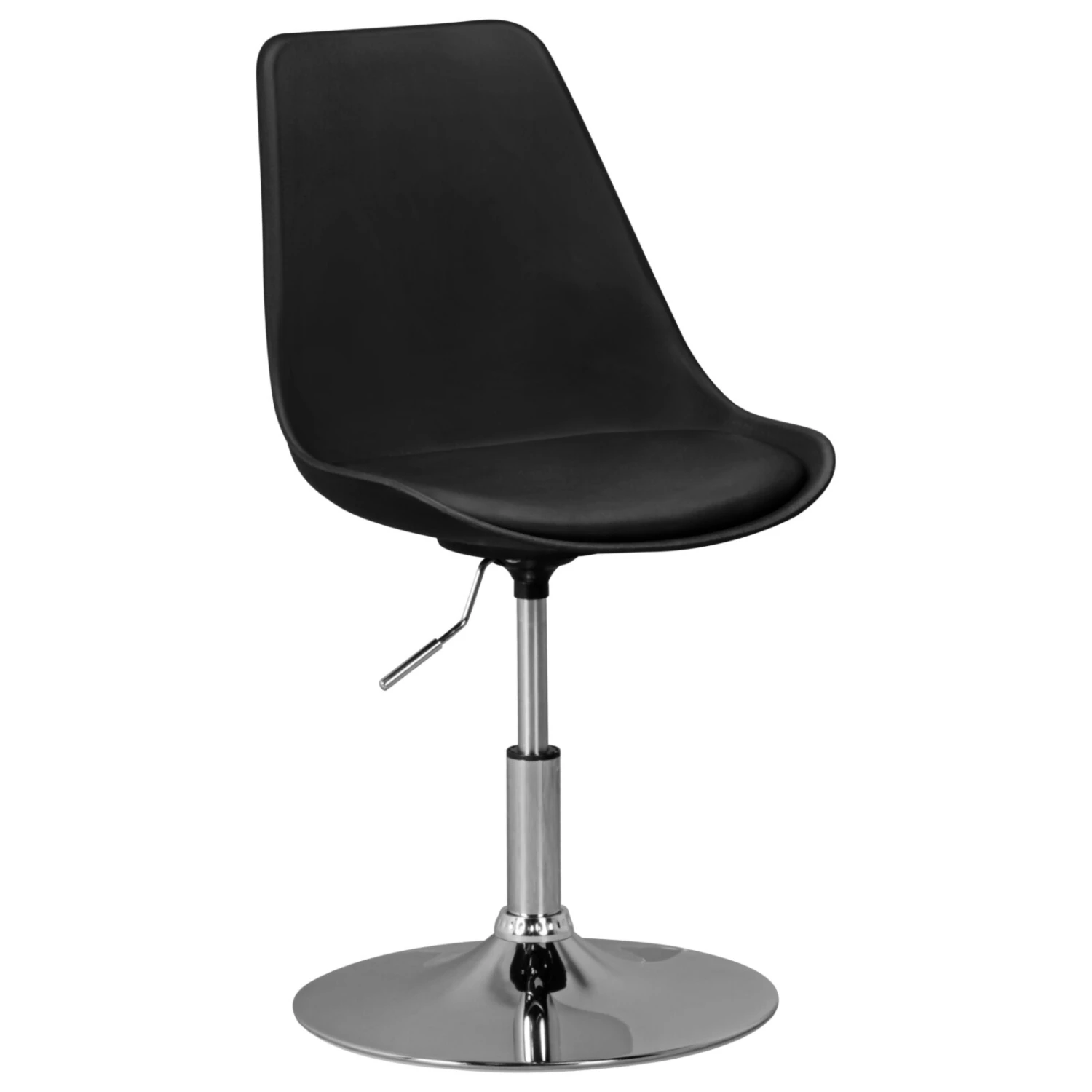 Der Drehstuhl verfügt über eine gemütliche Sitzschale mit Sitzfläche mit Lederoptik-Bezug. Ganz harmonisch mit dem verchromten Drehfuß in Trompetenform. Die Sitzschale in passender Farbe zur Sitzfläche lässt sich um 360° drehen. Sitzhöhenverstellung geschieht stufenlos durch Gaslift. Klein aber OHO!