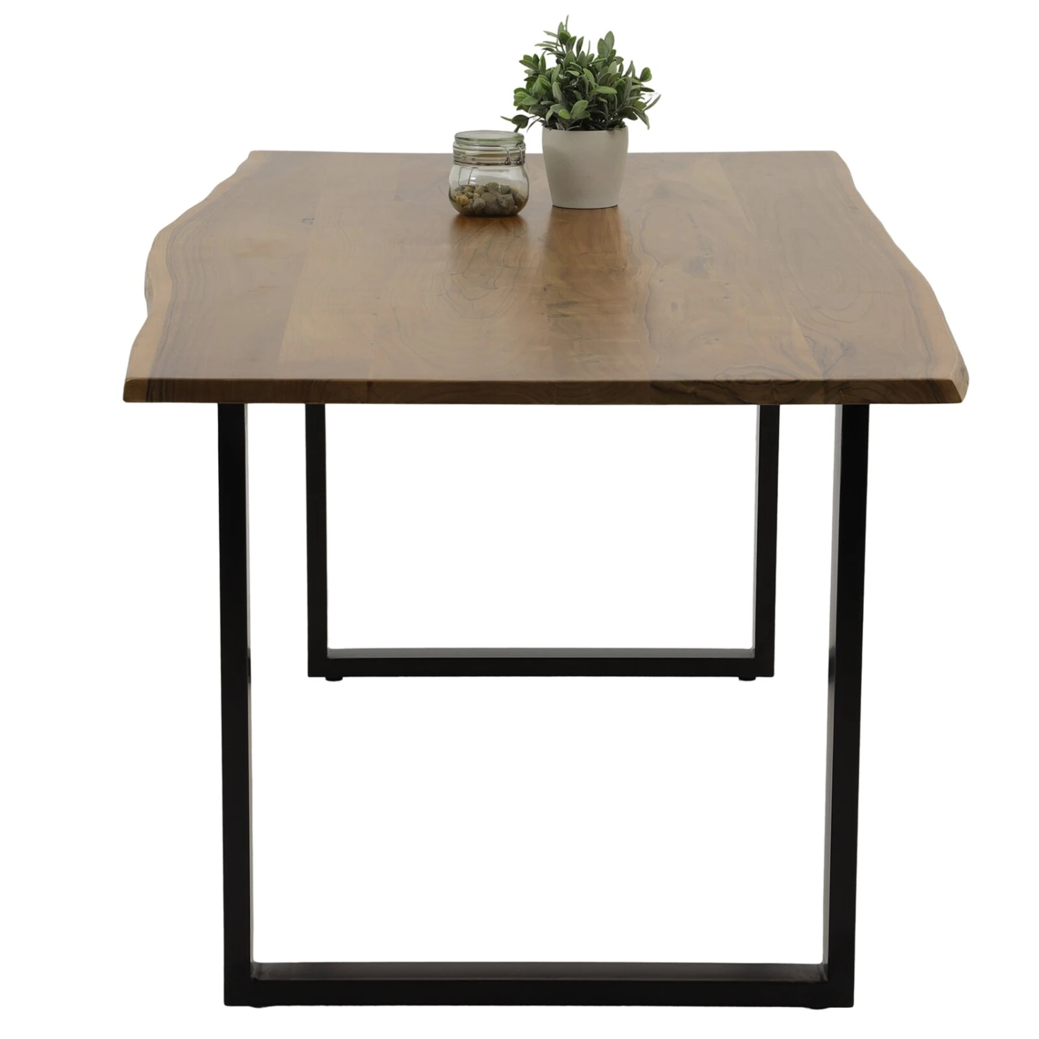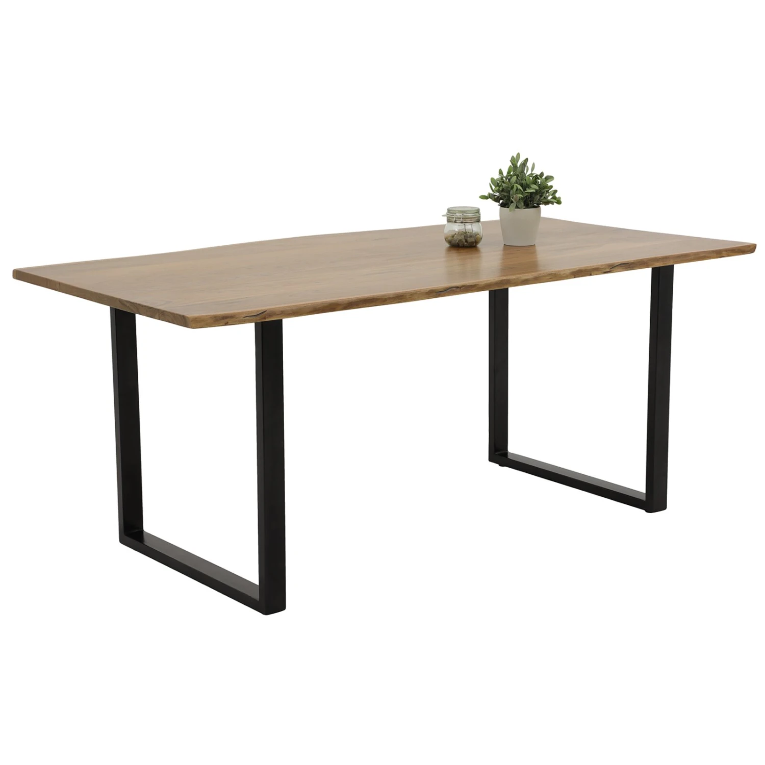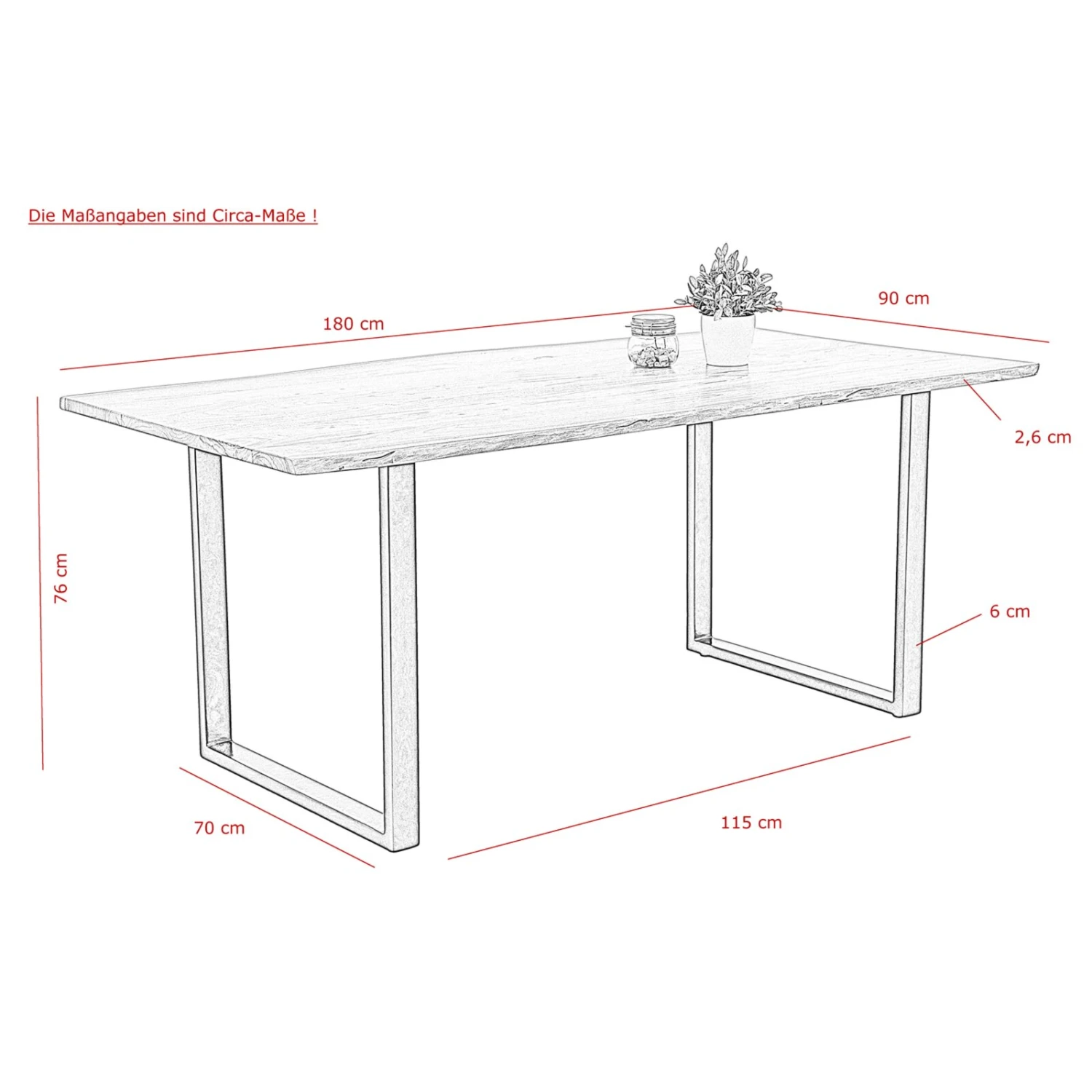 Dieser Massivholztisch sorgt mit der Baumkante für ein ganz besonderes Ambiente. Der große Esstisch bietet mit einer Breite von 180 cm ausreichend für ein schönes Abendessen mit der Famile oder mit Freunden.