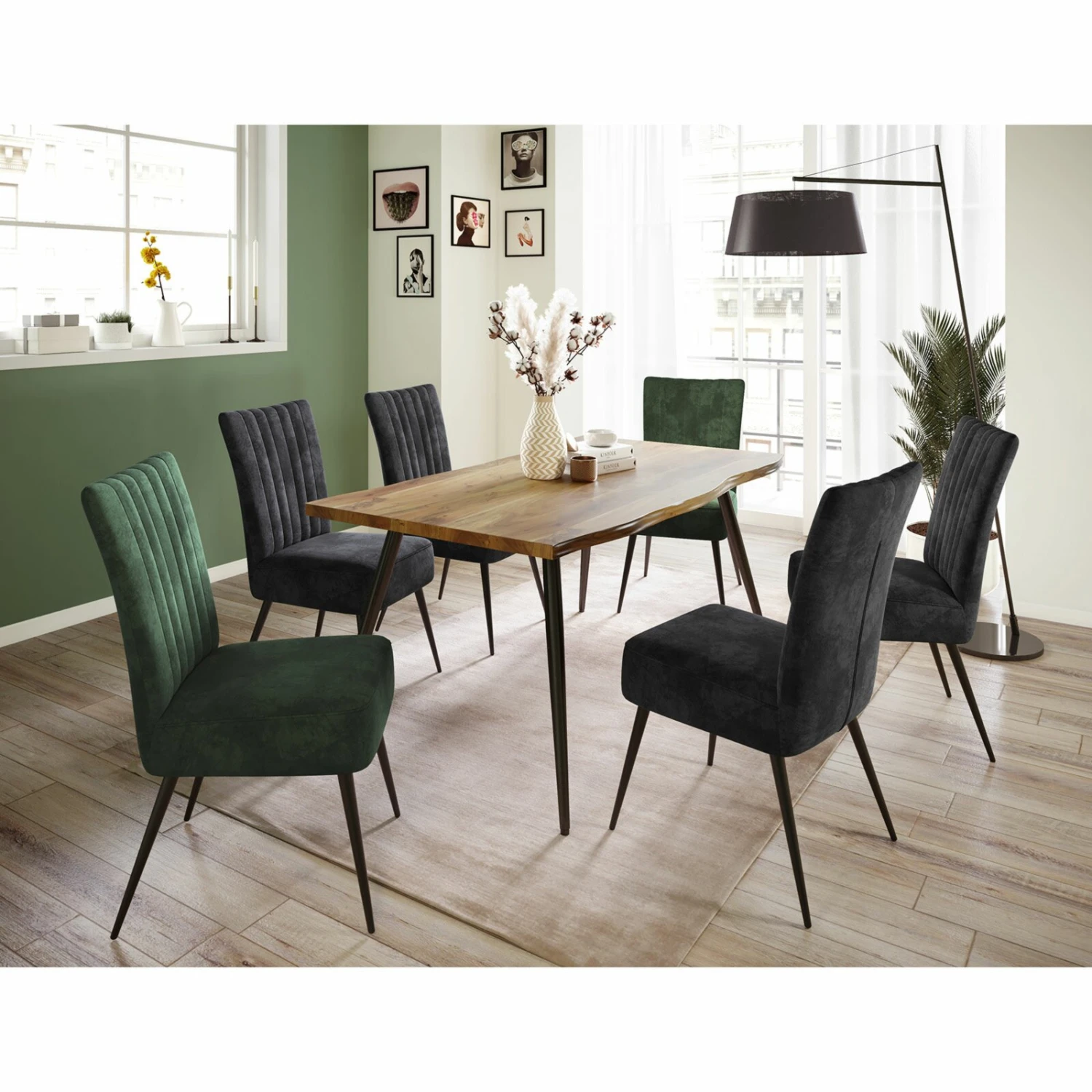 Dieser moderne Esstisch aus Akazien-Massivholz bringt mit Hilfe der Baumkante eine natürliche Atmosphäre in Ihre Wohnung oder Ihr Haus.
