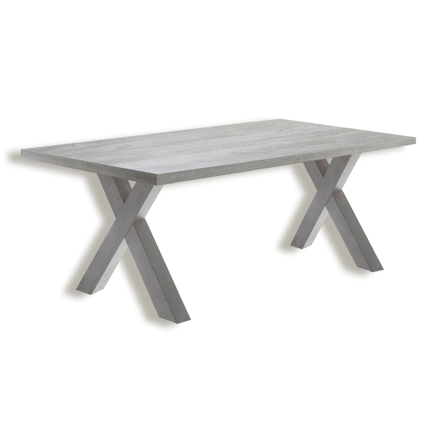 Mit einer 160 x 90 cm großen Tischplatte in Betonoptik sorgt dieser Esstisch für reichlich Platz für Freunde und Familie. Hier können Sie schöne gesellige Momente mit Ihren Liebsten verbringen und tolles Essen genießen. Das Holzgestell präsentiert sich in einer eindrucksvollen X-Form und ist in einer Graphitoptik foliert.