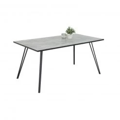 Dieser Esstisch besticht durch die moderne Tischplatte in Beton-Optik und das Fußgestell in der Farbe Schwarz. Er passt sich außerdem hervorragend an Ihre Inneneinrichtung an.