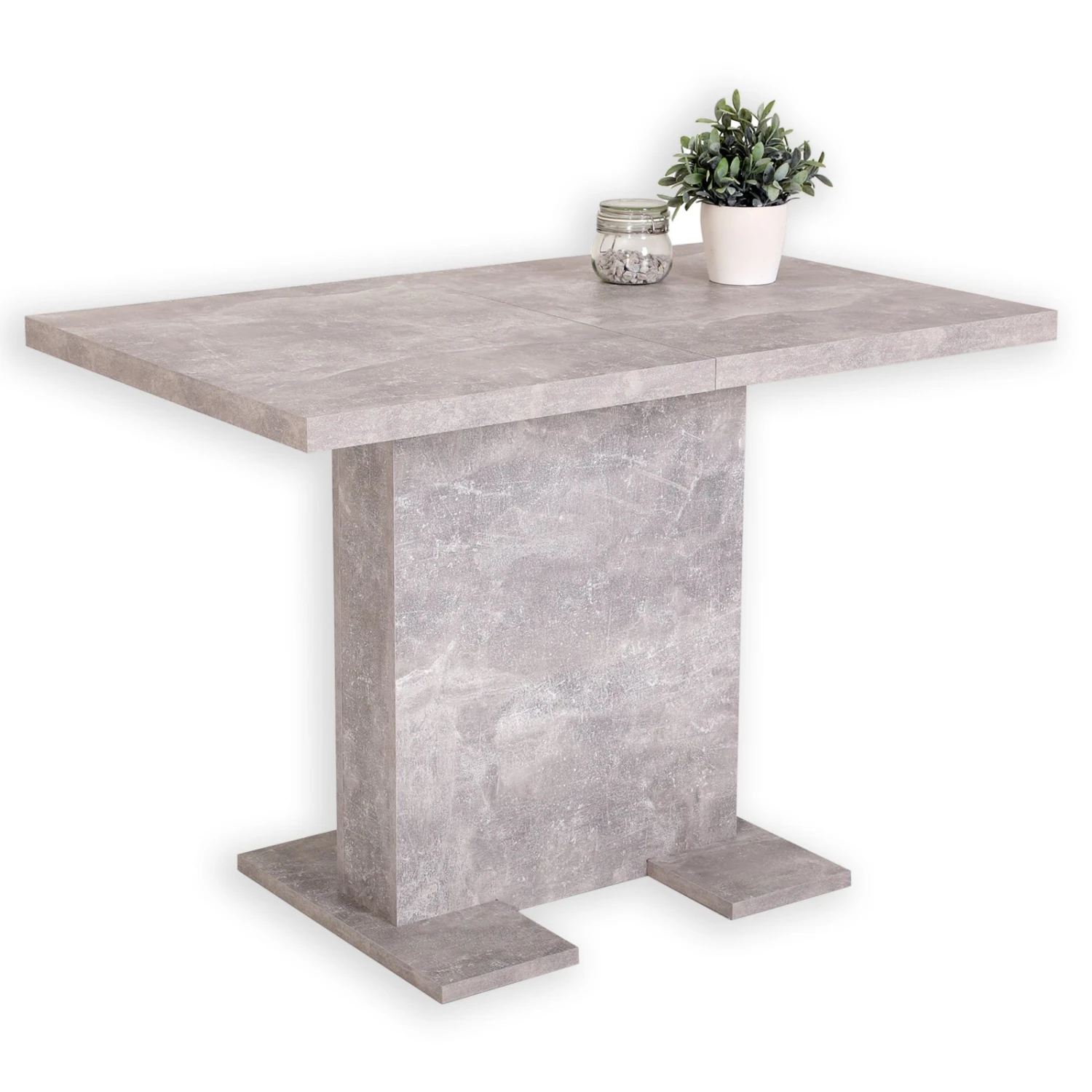 Dieser Esstisch in Sandeiche Nachbildung lässt sich bis auf 150 cm Breite mittels einer Einlegeplatte ausziehen, sodass Sie immer genügend Platz für Ihre Gäste haben werden. Die Farbausführung lässt sich mit den unterschiedlichsten Einrichtungen kombinieren und versprüht ein zeitloses Ambiente.