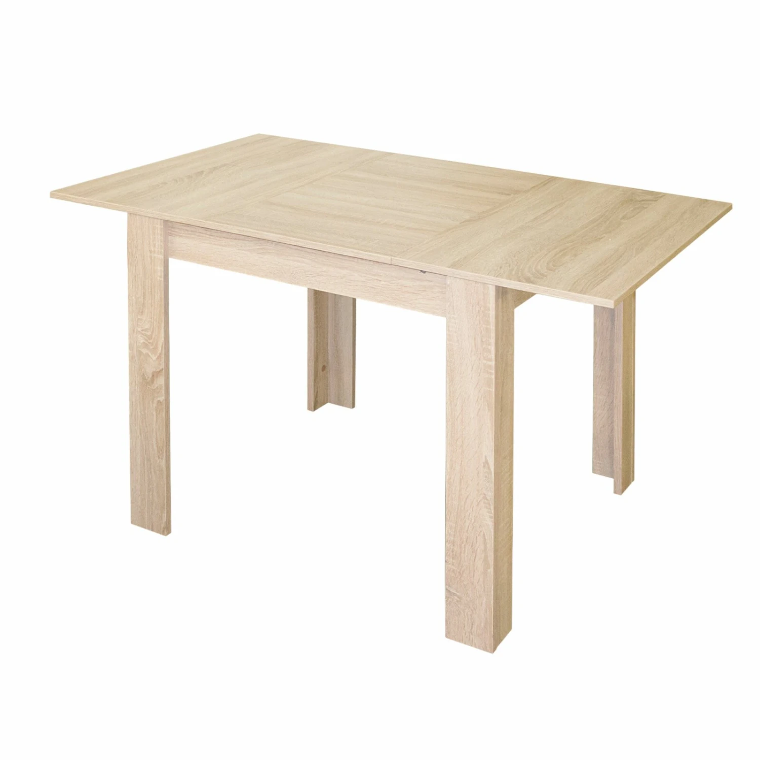 Ein wunderschöner 80 cm breiter Tisch in Eiche sägerau Nachbildung, der Ihren Wohn- oder Esszimmer verschönert. Der Tisch ist optimal für Sie, wenn Sie bei Feierlichkeiten mehr Essplatz für Ihre Gäste benötigen. Denn dieser Esstisch lässt sich von 80 cm auf 120 cm ausziehen und ermöglicht Ihnen, Ihren Raum effizient zu nutzen.