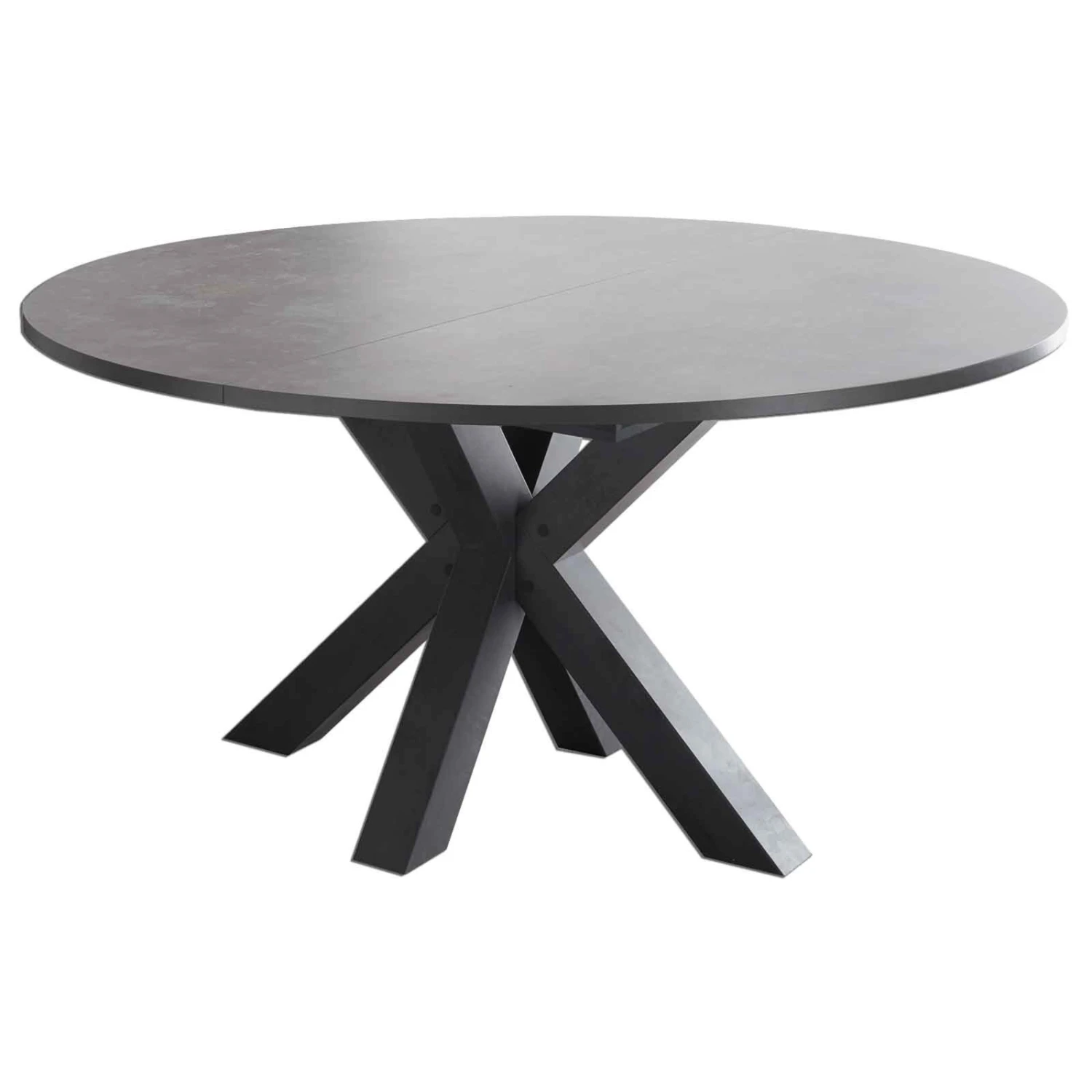 Dieser Esstisch präsentiert sich in einem dunkeln Graphit-Ton und steht auf einem Sternfuß-Gestell aus Holz. Die Tischplatte ist aus Keramik und weist eine Stärke von etwa 25 mm auf. Wenn mal mehr Besuch kommt als erwartet, kann der Tisch mit wenigen Handgriffen ausgezogen werden.