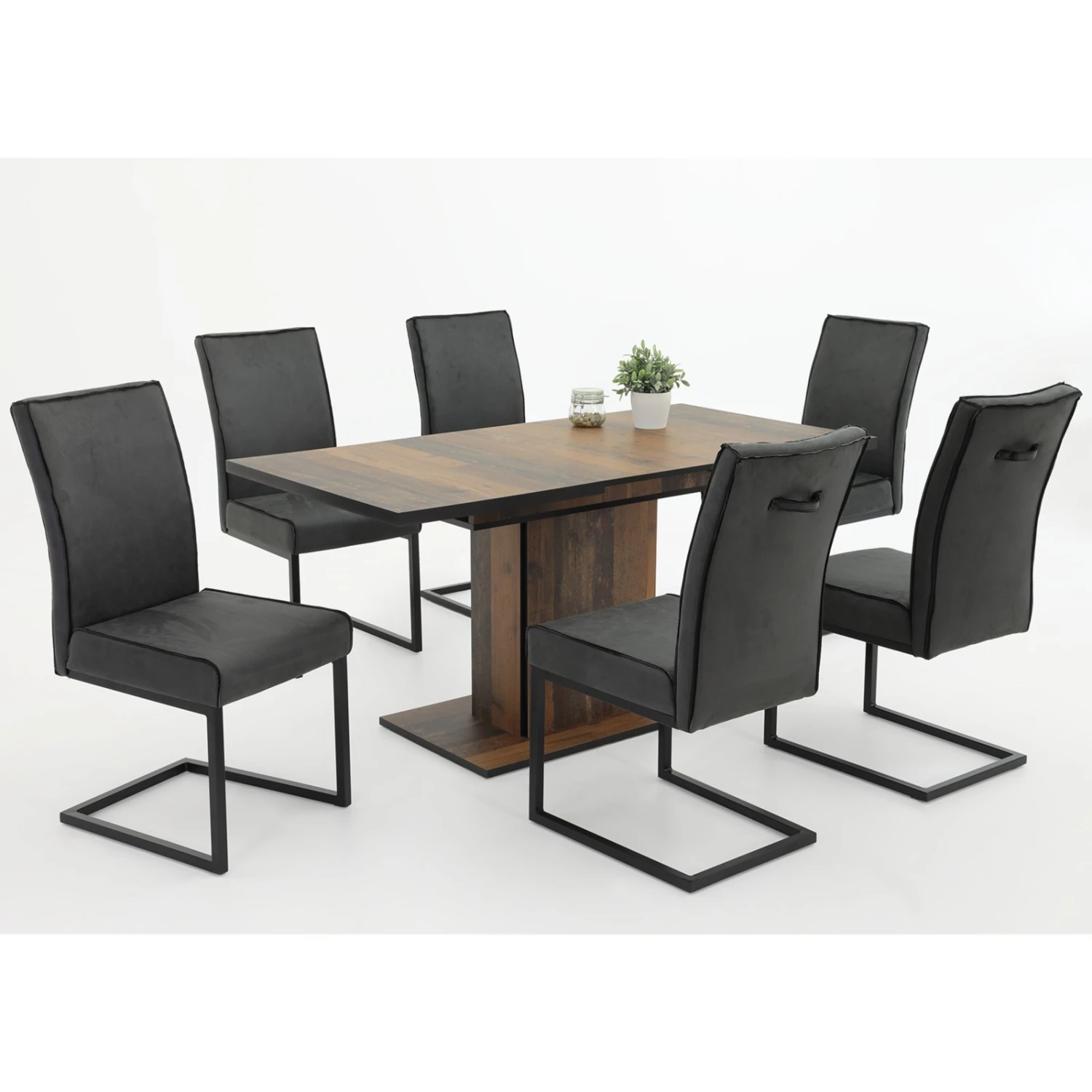 Für Modernität sorgt dieser ausziehbare Esstisch in Oldwood Nachbildung. Mit der innenliegenden Einlegeplatte haben Sie die Möglichkeit, die Tischplatte von 120 auf 160 Zentimeter zu vergrößern, um für mehr Platz zu sorgen. Der moderne Holzton wird in Ihrem Esszimmer für Gemütlichkeit und ein tolles Ambiente sorgen.