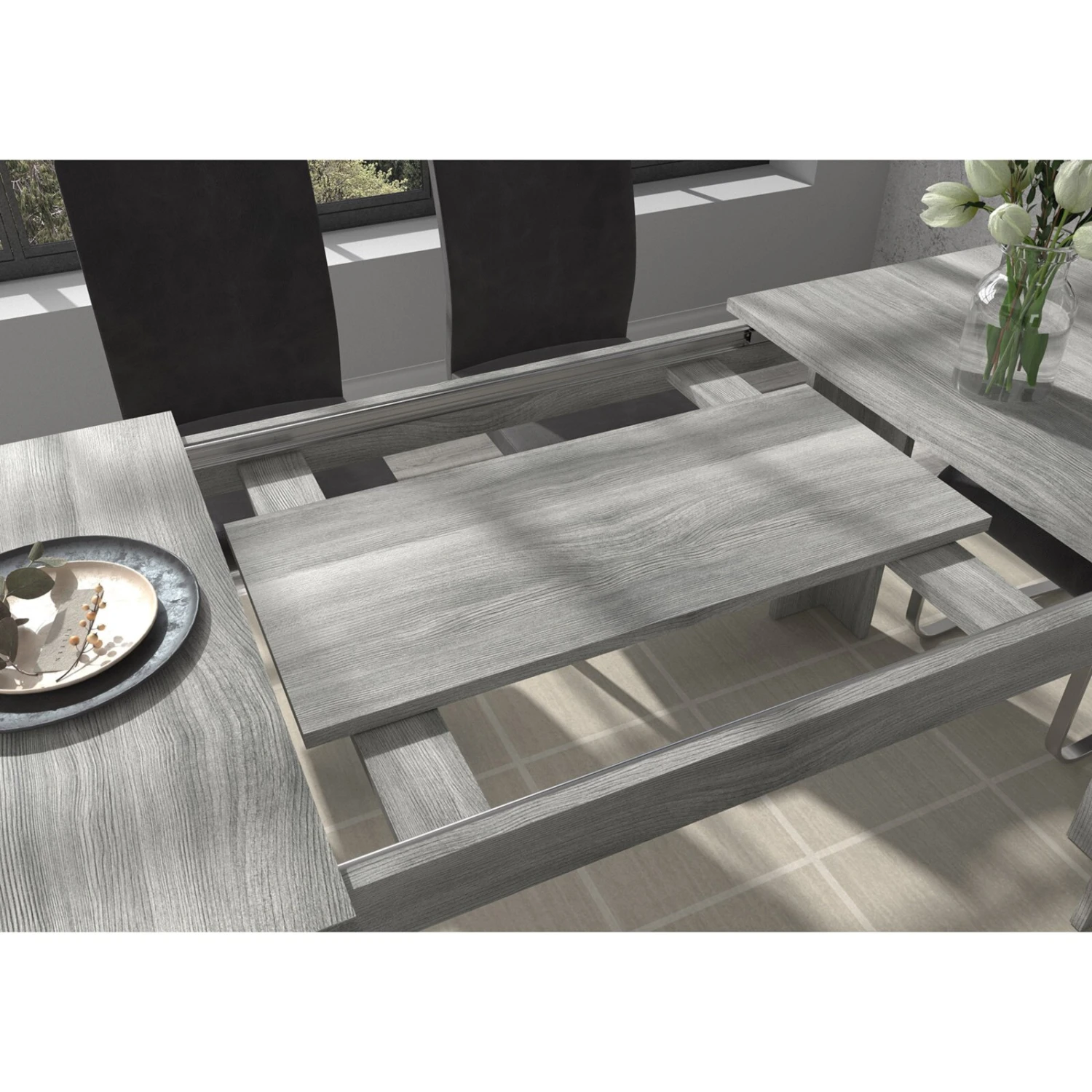 Esstisch TITAN – Rauchsilber – ausziehbar