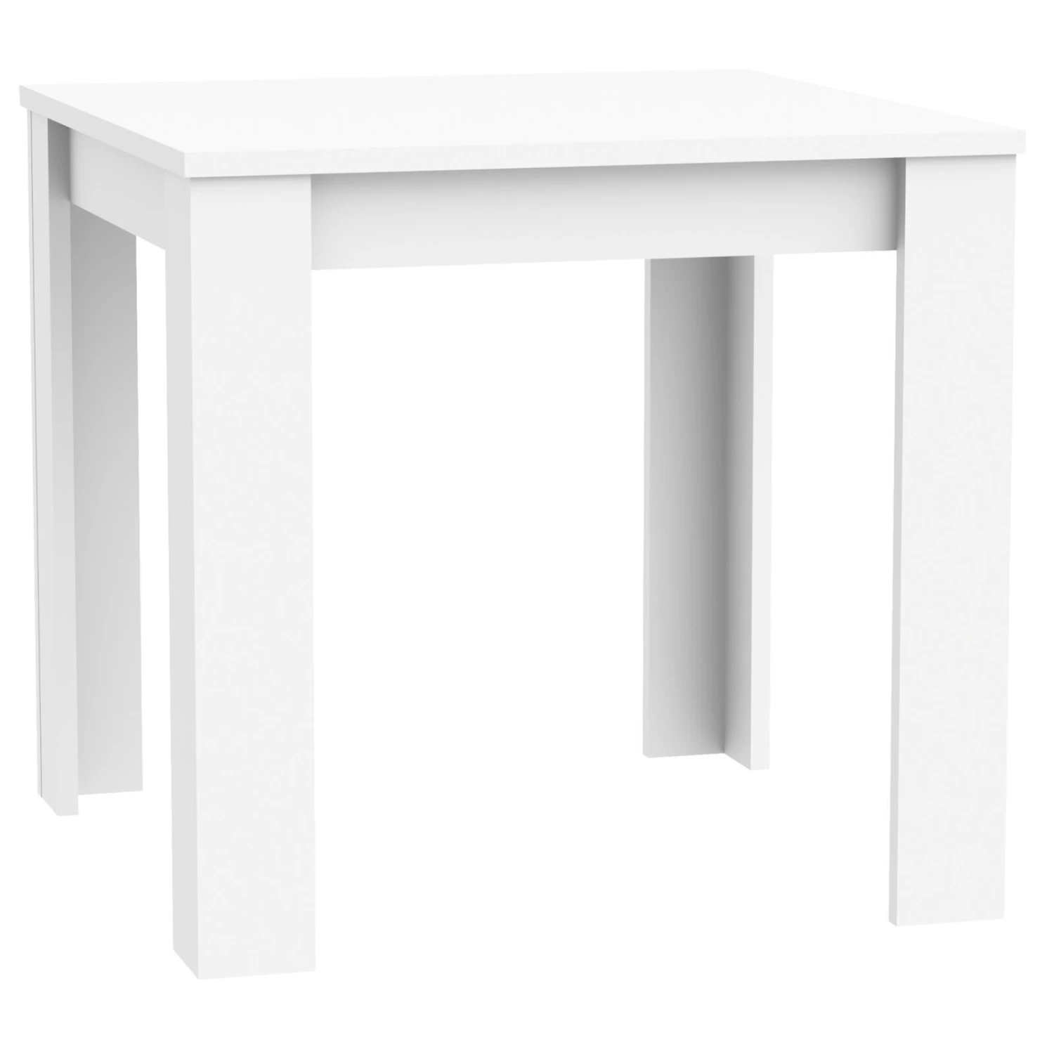 Die schlichte Farbgebung in Weiß macht es möglich, diesen etwa 80 x 80 Zentiemter großen Esstisch mit den verschiedensten Wohnstilen zu kombinieren. Die Höhe von 76 Zentimetern ist optimal, um dort täglich zu dinieren oder gesellige Runden mit Freunden zu verbringen.