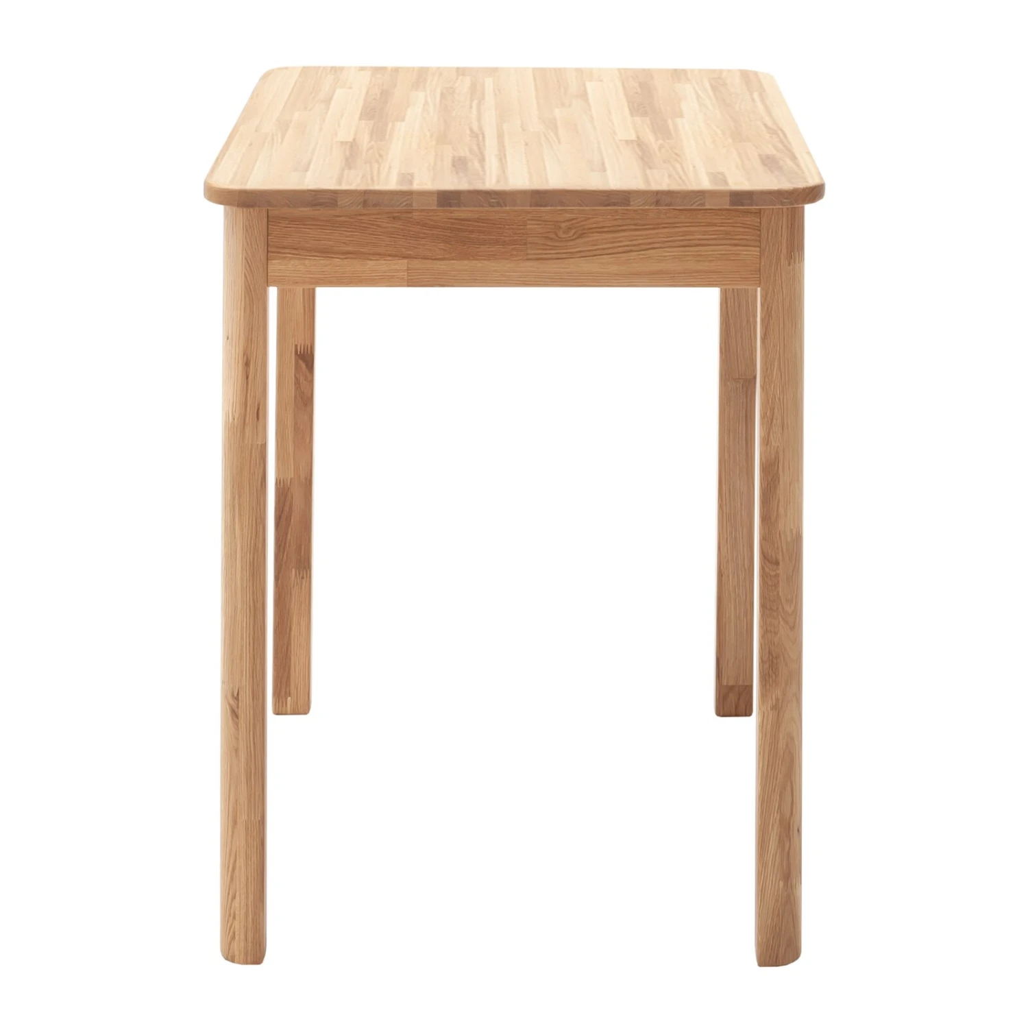 Das verwendete Holz ist besonders stabil und auch aufgrund seiner Härte ausgezeichnet geeignet als Esstisch. Mit seinen abgerundeten Ecken an Platte und Beinen fügt er sich harmonisch in Ihr Zuhause ein. Jeder Tisch aus Wildeiche ist aufgrund seiner einzigartigen Maserung ein Unikat.
