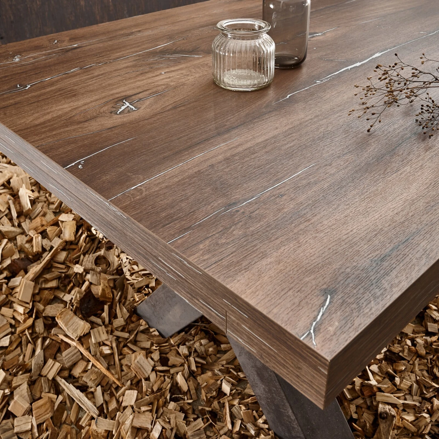 Der etwa 210 Zentimeter breite Esstisch bietet viel Platz zum Dinieren mit Freunden und Familie. Für den Fall, dass etwas mehr Platz benötigt wird, sind im Lieferumfang zwei Ansatzplatten für die Verlängerung der Tischplatte inbegriffen.