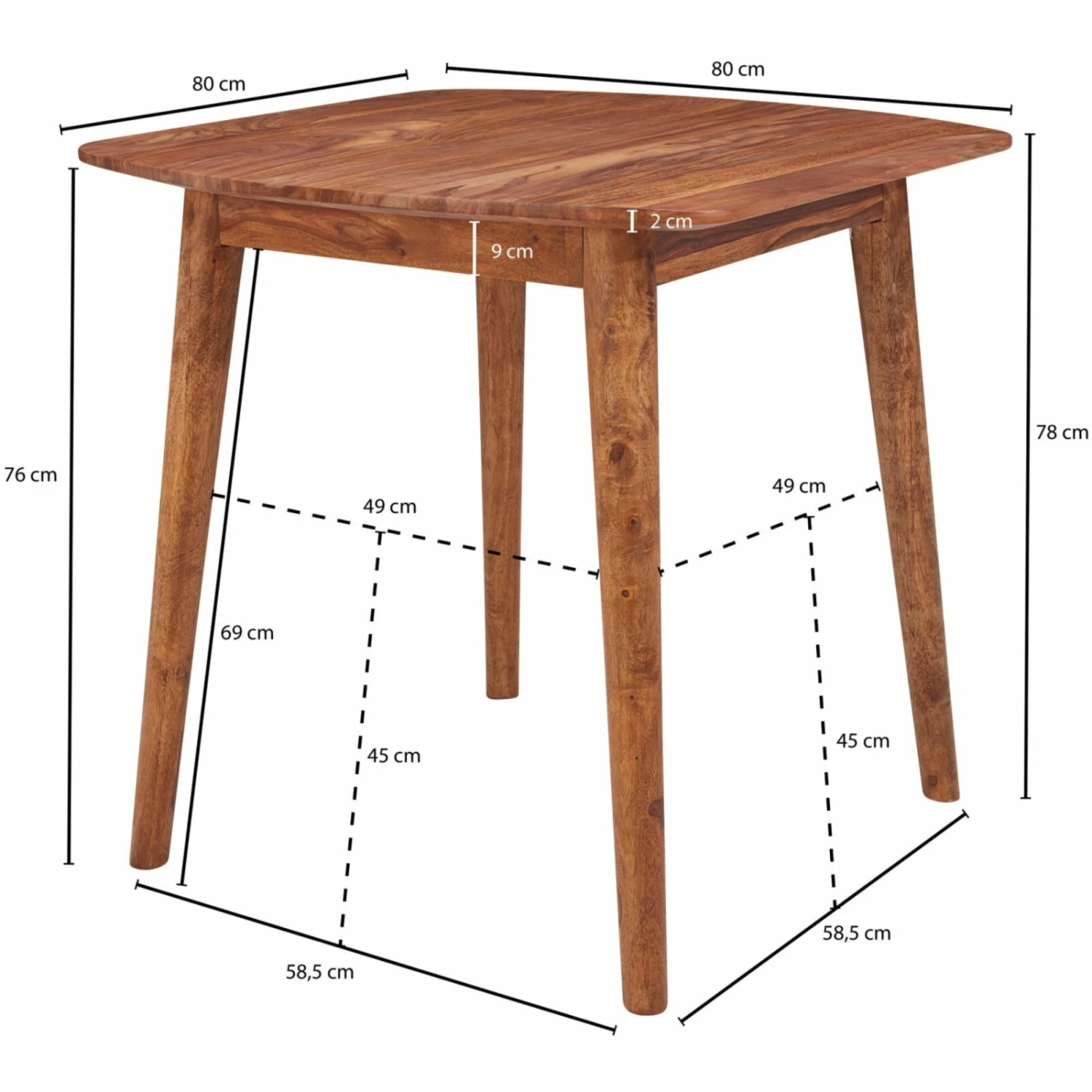 - Maße Tischplatte: BxHxT ca. 80 x 2 x 80 cm