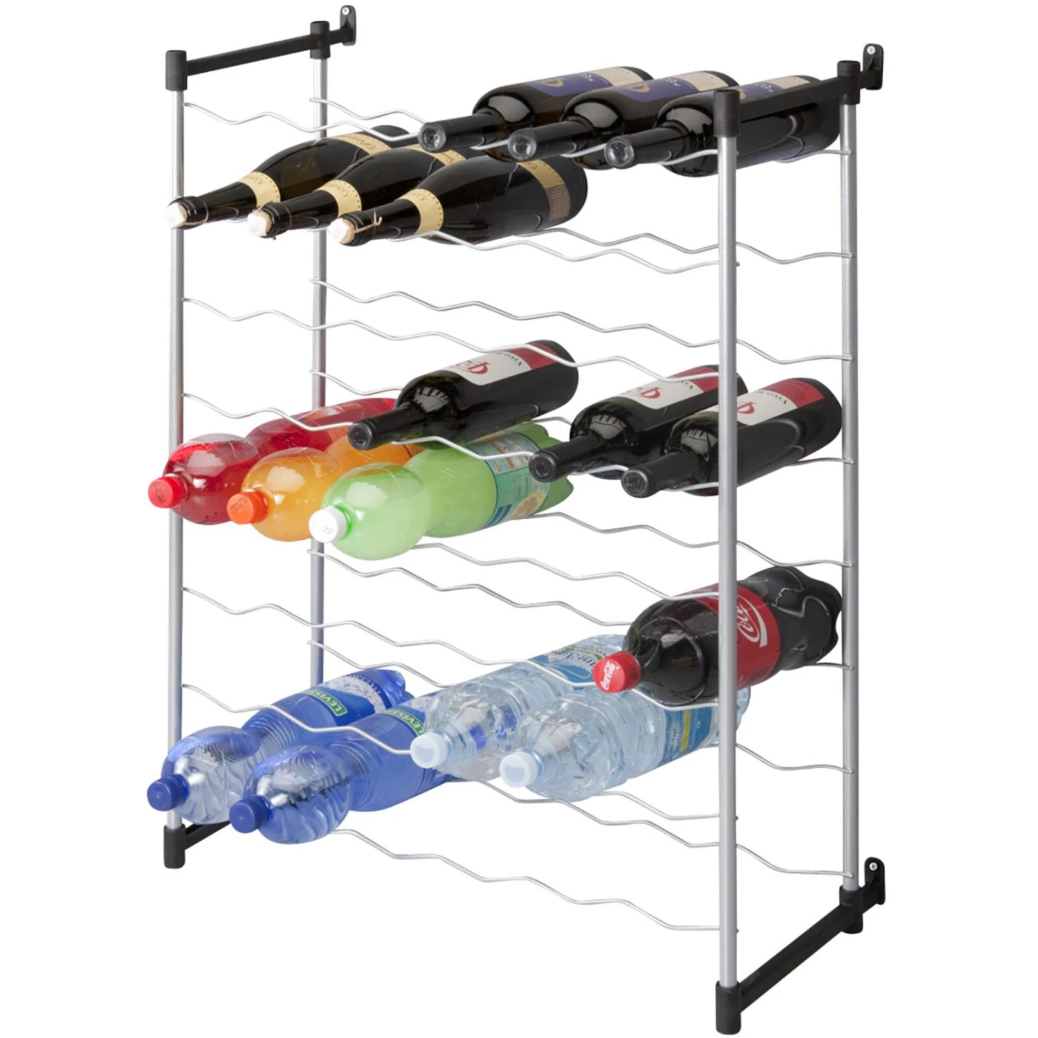 Das fabelhafte Flaschenregal besteht aus hochwertigem, plastifiziertem Draht und bietet Ihnen Platz für bis zu 48 Flaschen. Bereits im Lieferumfang enthalten ist das Befestigungsmaterial zur festen Wandmontage. Perfekt geeignet für Küche, Keller oder Vorratsraum.