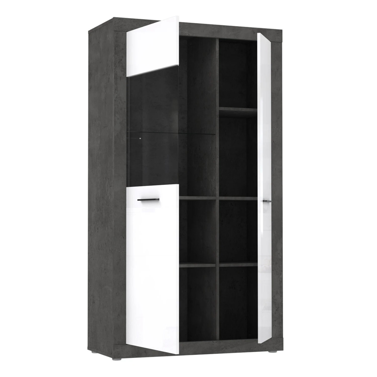 Highboardvitrine – Betonoptik – weiß – 168 cm hoch