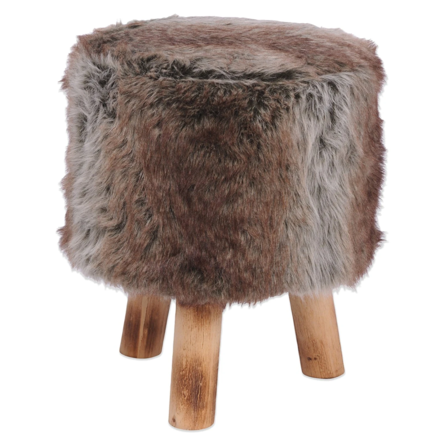 Dieser braune Hocker mit Kunstfellbesatz ist vielseitig einsetzbar, egal ob Sie einfach nur die Füße hochlegen oder ihn als alternative Sitzgelegenheit nutzen. Er hat eine flauschige Plüschsitzfläche und drei Holzbeine. Er ist 39 x 32 cm groß und besonders an kalten Wintertagen ein wunderschönes Möbel- und Dekostück.