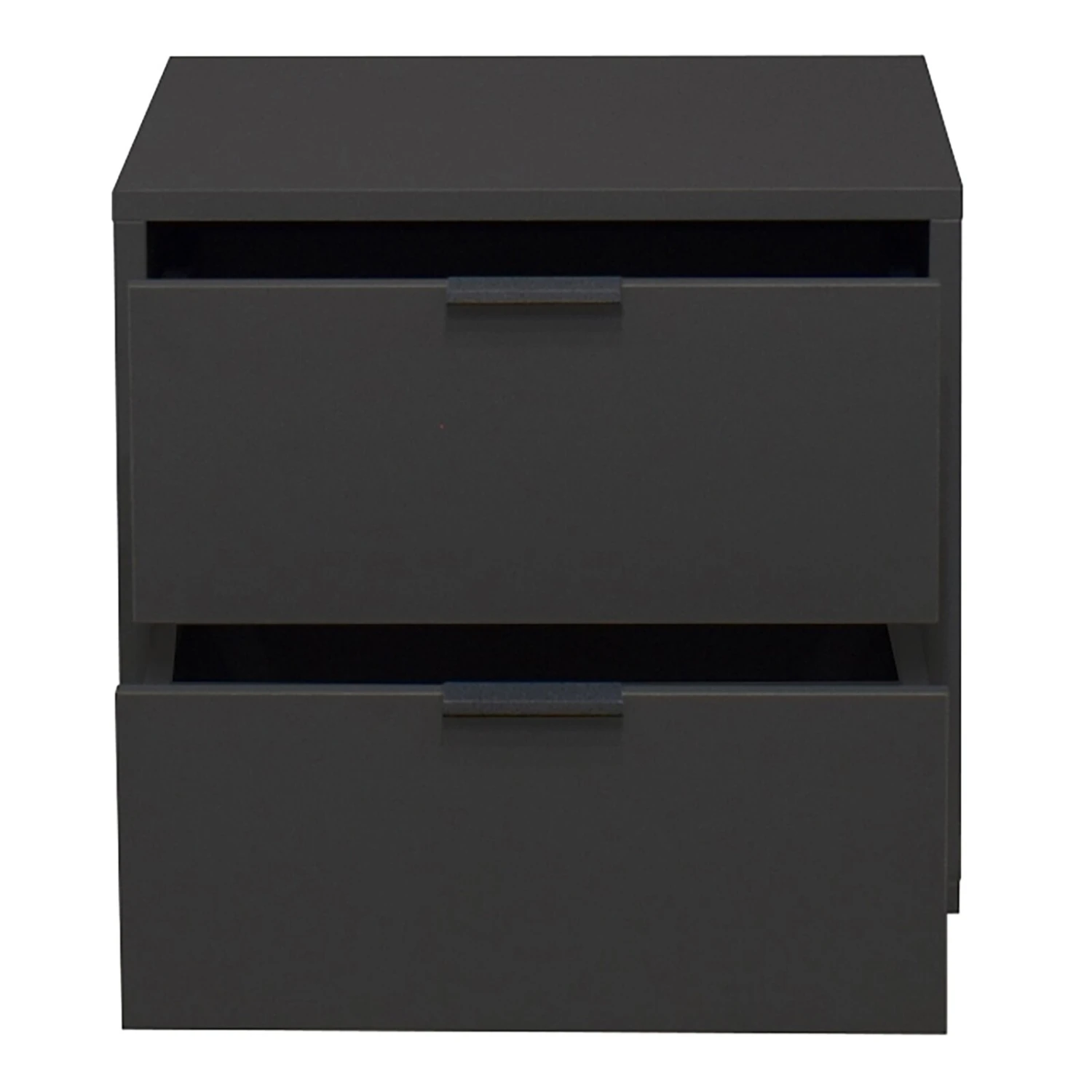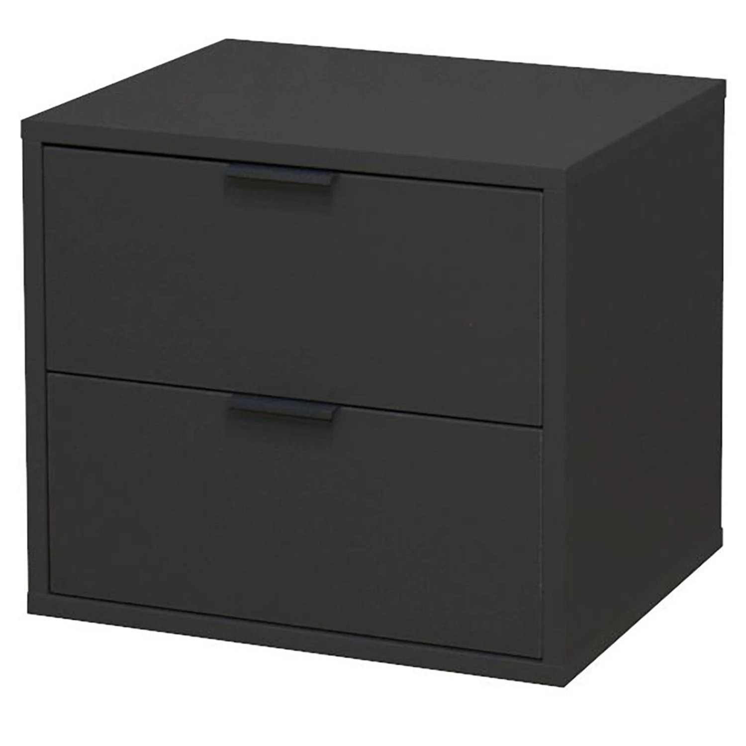 Die etwa 51 Zentimeter breite Kommode bietet dir mit insgesamt zwei Schubkästen viel Platz für die verschiedensten Utensilien. Die Farbgebung in Anthrazit lässt sich mit den unterschiedlichsten Einrichtungsstilen kombinieren.