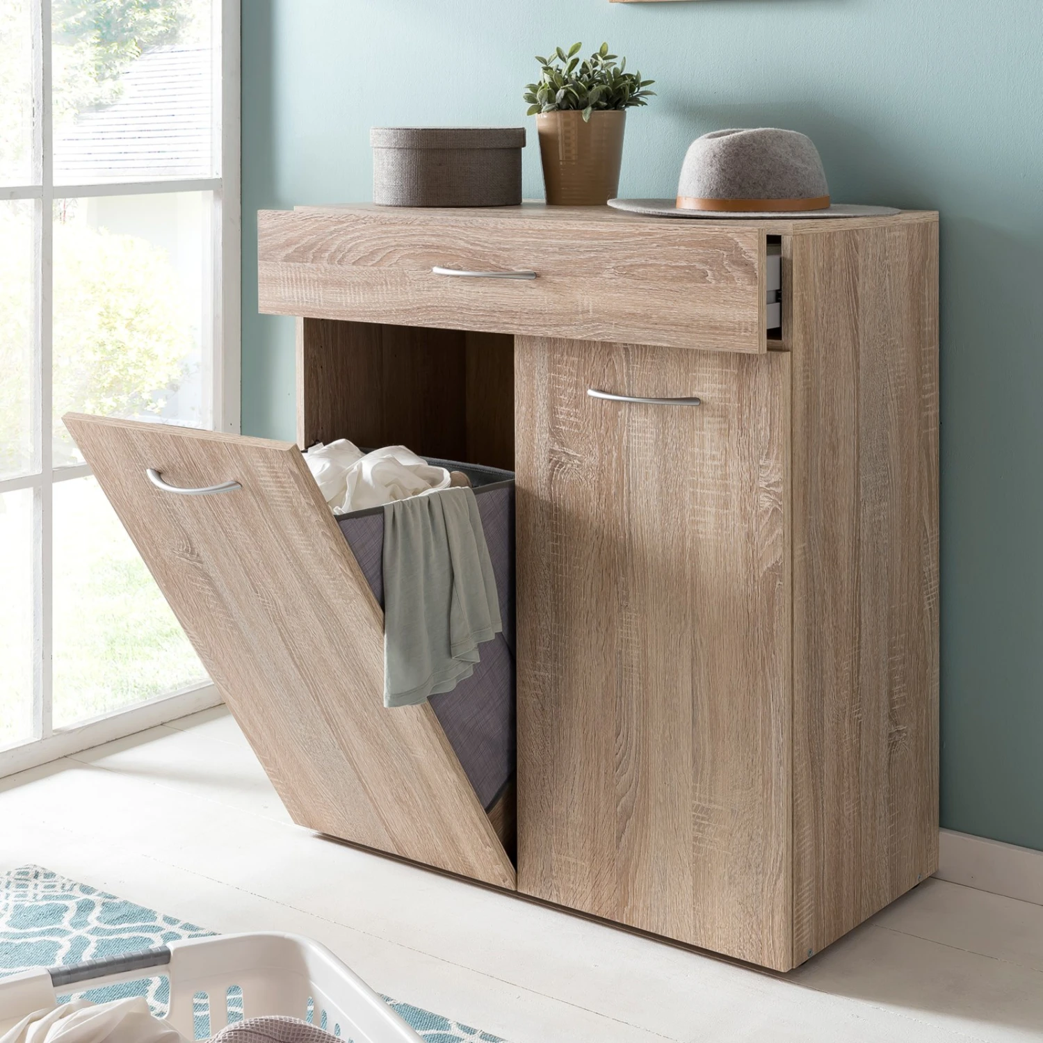 Eine nützliche Kommode. Die zwei-türige Kommode ist eine Wäschekommode die mit zwei Kipptüren ausgestattet ist. Darin befinden sich zwei herausnehmbare Wäscheboxen. Ordung halten wird Ihnen hier ganz leicht gemacht. In der ebenfalls vorhandenen Schublade können kleinere Utensilien untergebracht werden.