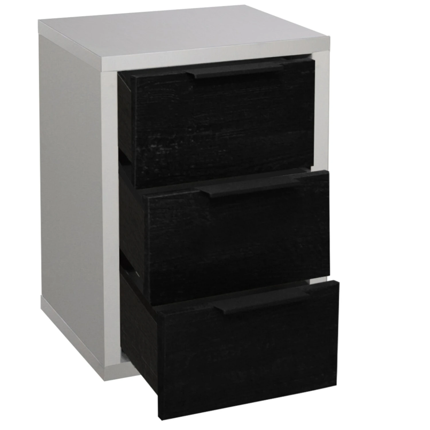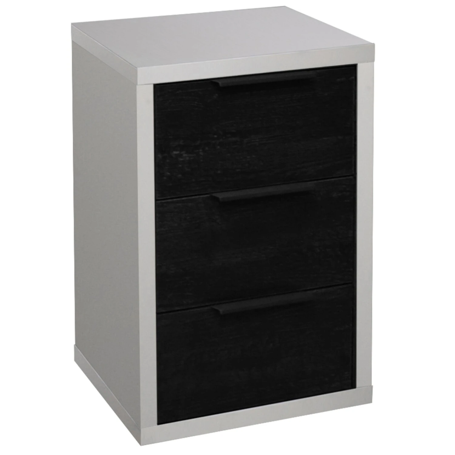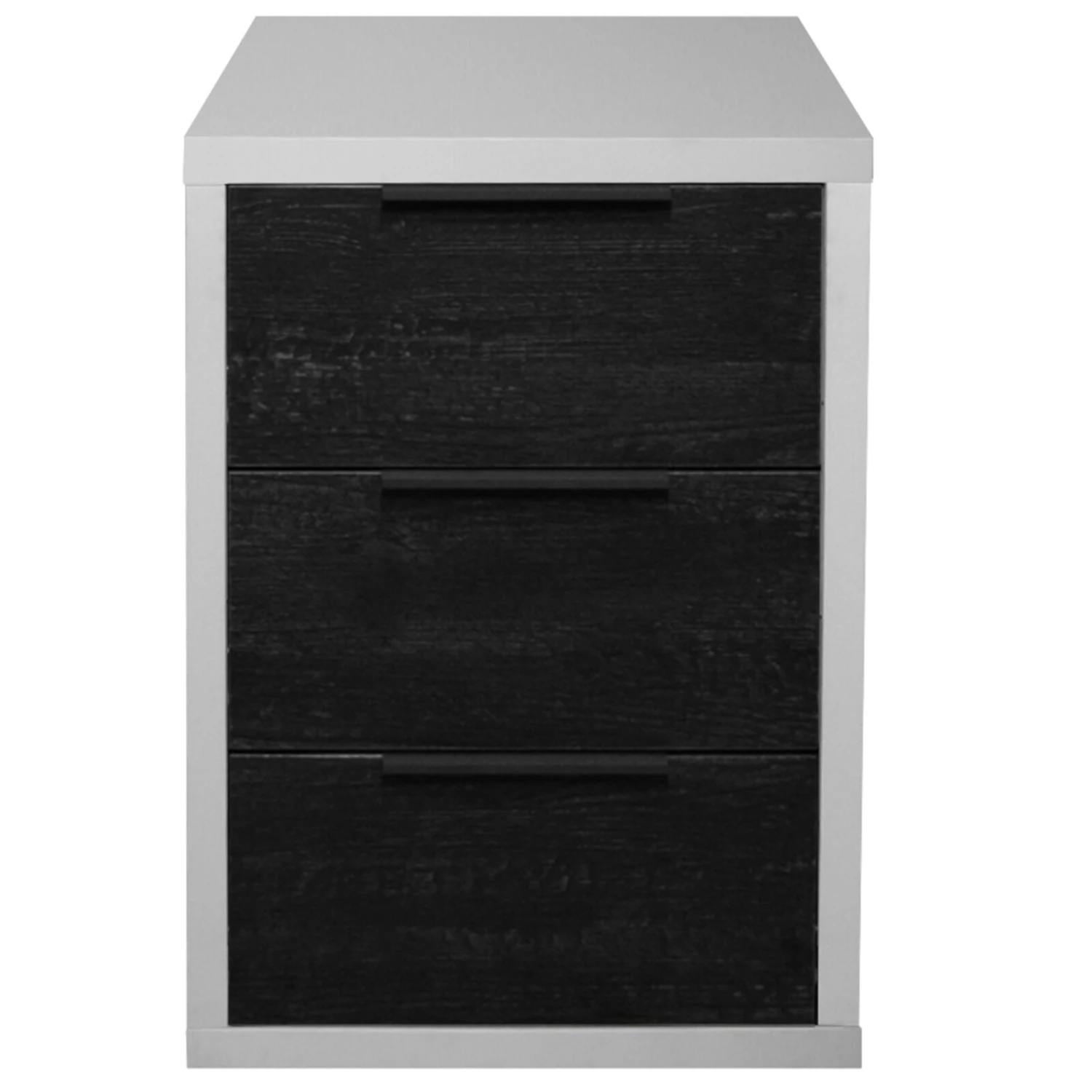 Kommode – kreidegrau matt – Flamed Wood black – 3 Schubkästen
