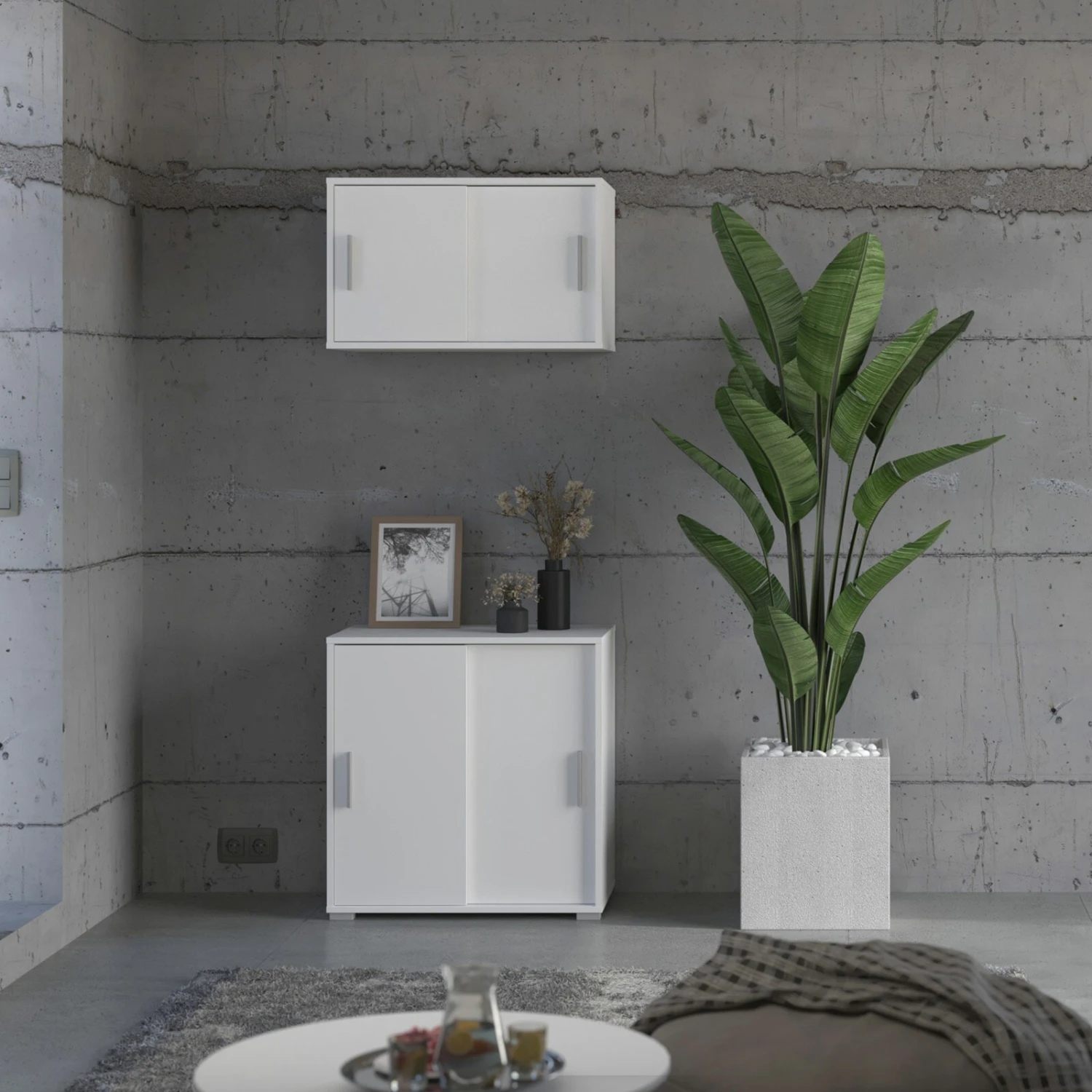 Kommode MOVER – weiß – 2 Schiebetüren – 68×72 cm