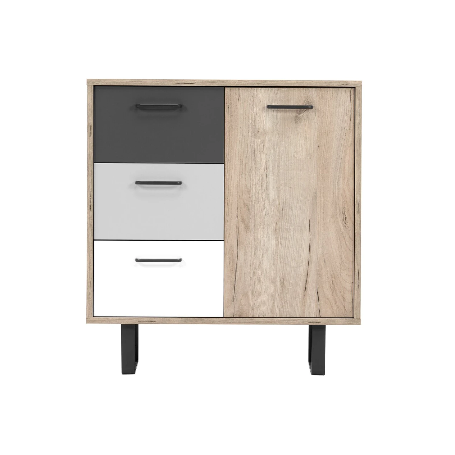 Kommode ORLANDO – Grey Craft Oak-Farbmix – 3 Schubkästen – 80 cm
