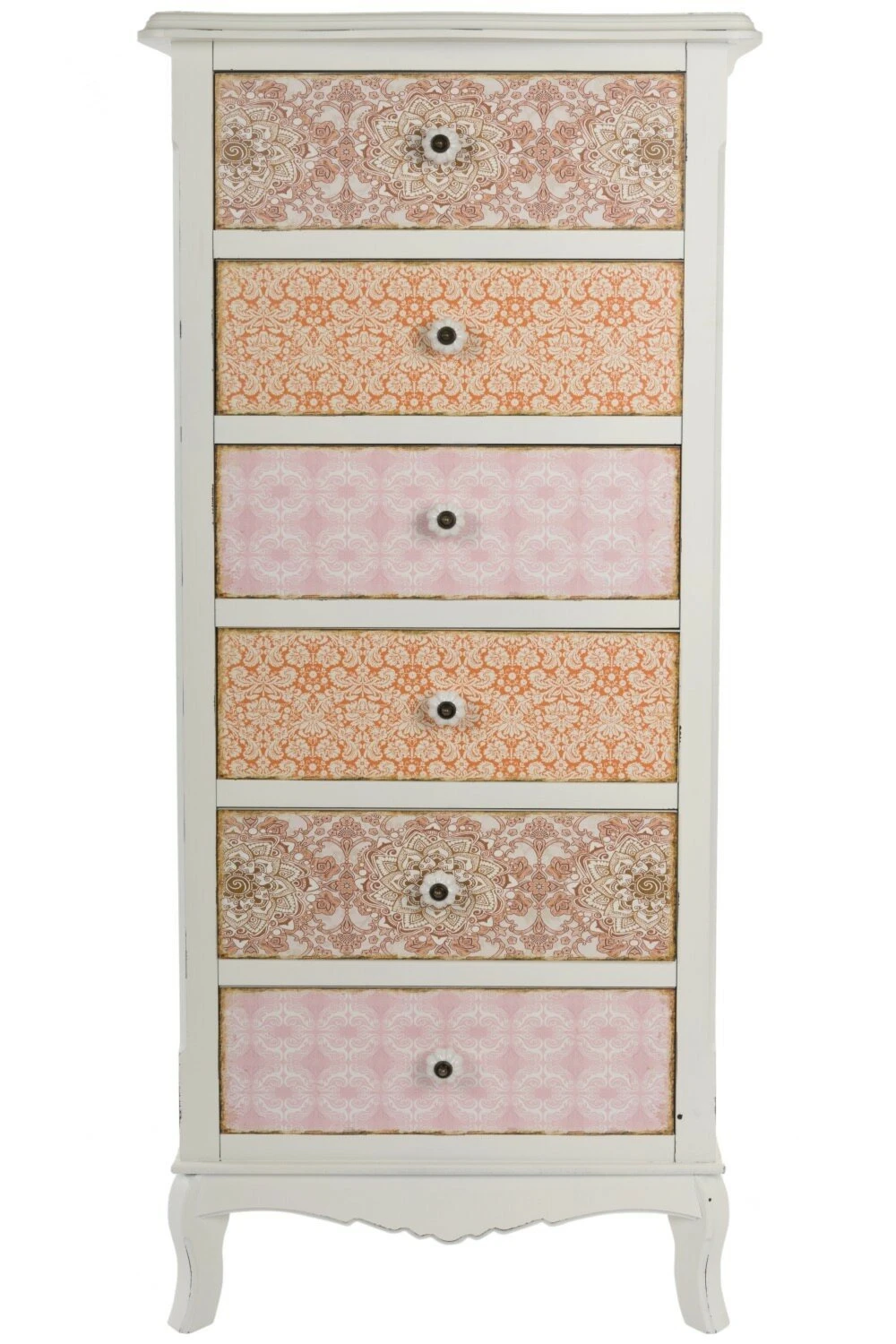 Kommode Paisley – shabby chic – weiß-bunt – mit 6 Schubladen