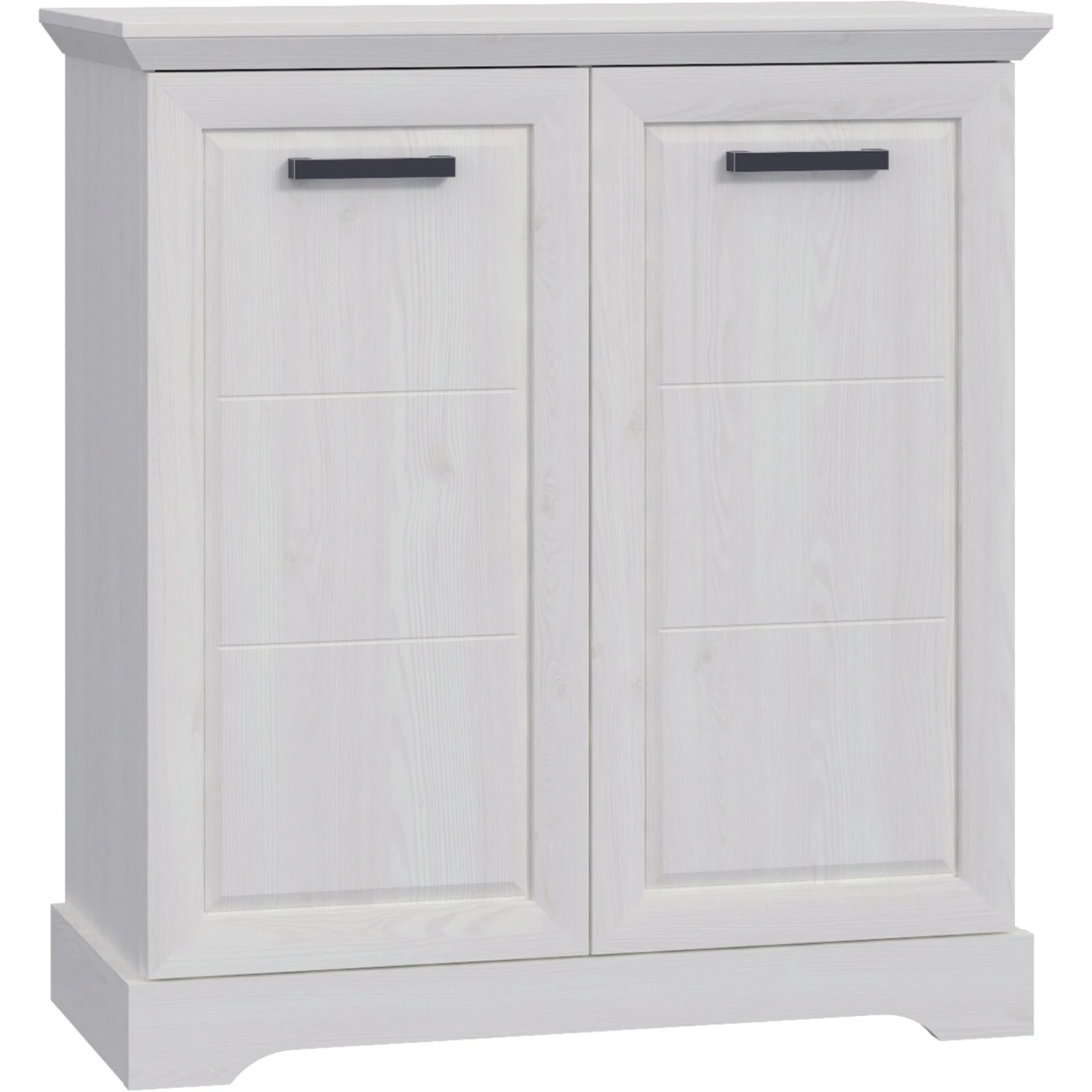 Mit ihrem Design im modernen Landhausstil wird diese Kommode in Sibiu Lärche zu einem Hingucker in Ihrem Zuhause. Ihre zeitlose Optik in Weiß wird durch die Tiefziehfronten ergänzt. Dank der schwarzen Metallgriffe können Sie sie mit unterschiedlichen Einrichtungen kombinieren. Hergestellt ist die Anrichte aus foliertem Holzwerkstoff in einer Lärche-Nachbildung. Mit den Maßen von BxHxT ca. 95 x 104 x 45 cm lässt sich der Schrank wahlweise im Flur, in Ihrem Wohnbereich oder auch im Schlafzimmer unterbringen. Hier bietet er hinter seinen mit Dämpfungsbeschlägen ausgestatteten Türen reichlich Stauraum. Auf den vier Einlegeböden können Sie nach Belieben Bücher, Wohnaccessoires und weitere Dinge verwahren.