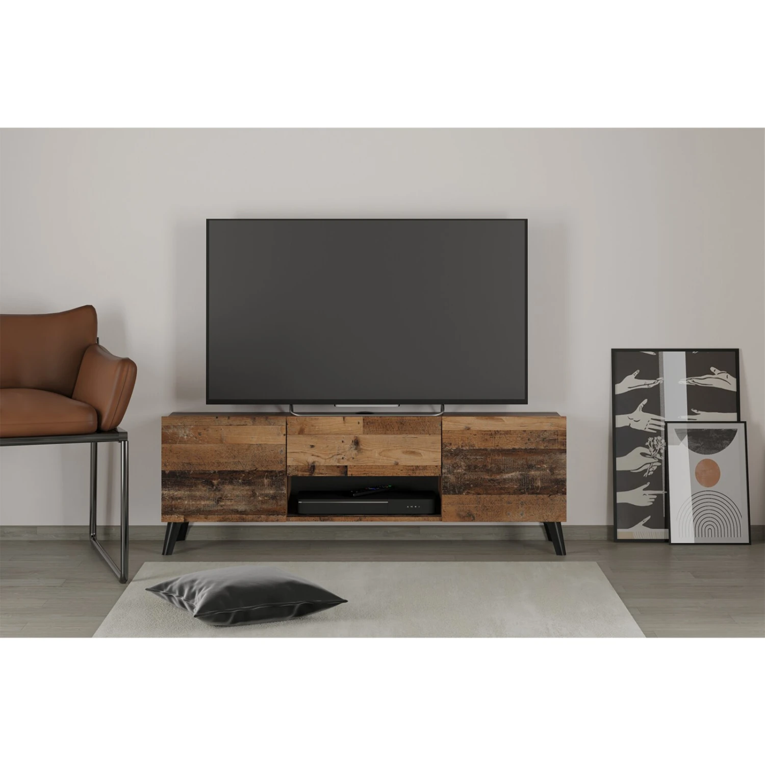 Mit diesem Lowboard haben Sie nicht nur endlich die perfekte Abstellmöglichkeit für Ihren Fernseher, sondern verschaffen sich auch zusätzlichen Stauraum für TV-Zubehör und andere Gegenstände. Auch überzeugt das Möbelstück durch das moderne und zeitlose Design. Füße und Wandbefestigungen sind im Lieferumfang inklusive.