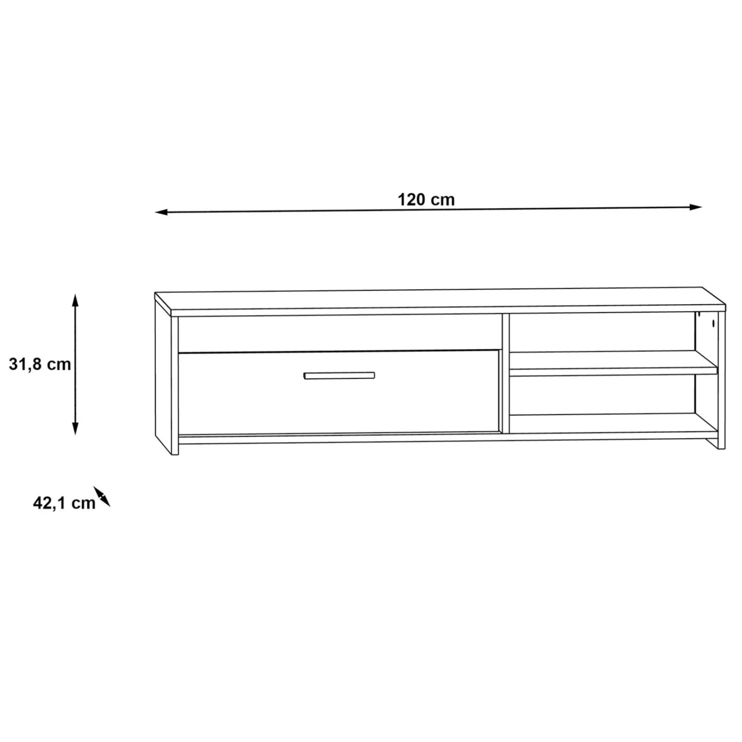 - Maße: BxHxT ca. 120 x 32 x 42 cm