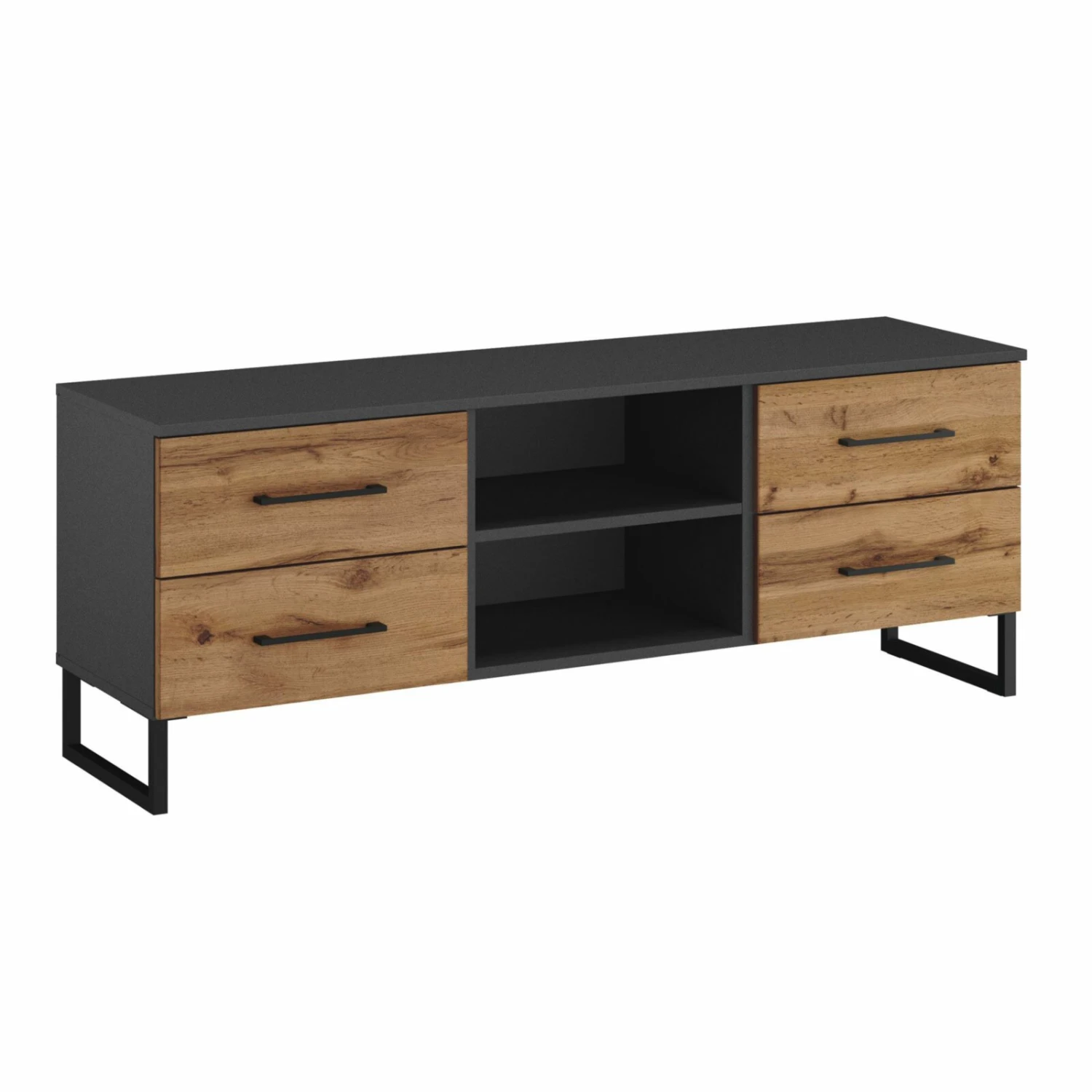 Das perfekte Lowboard für jedes Jugendzimmer! Optisch überzeugt es durch sein Industrial-Style aus Wotan Eiche Nachbildung und Fronten in Grau metallic. In den vier Schubladen können alle Utensilien, wie zum Beispiel Konsolenspiele, Unterlagen oder auch Schulhefte untergebracht werden. Die zwei offenen Fächer sind zudem praktisch für TV-Receiver oder Spielekonsolen Ihres Kindes.