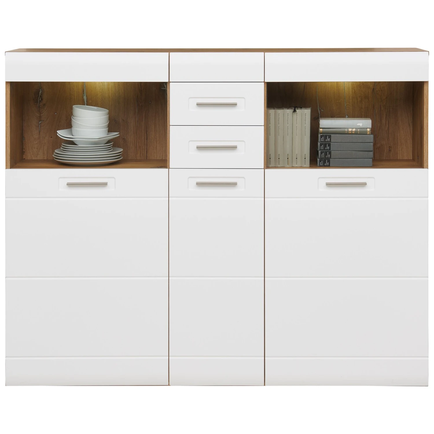 Luca Bessoni Highboardvitrine AURIS – weiß-Flagstaff Eiche – 155 cm