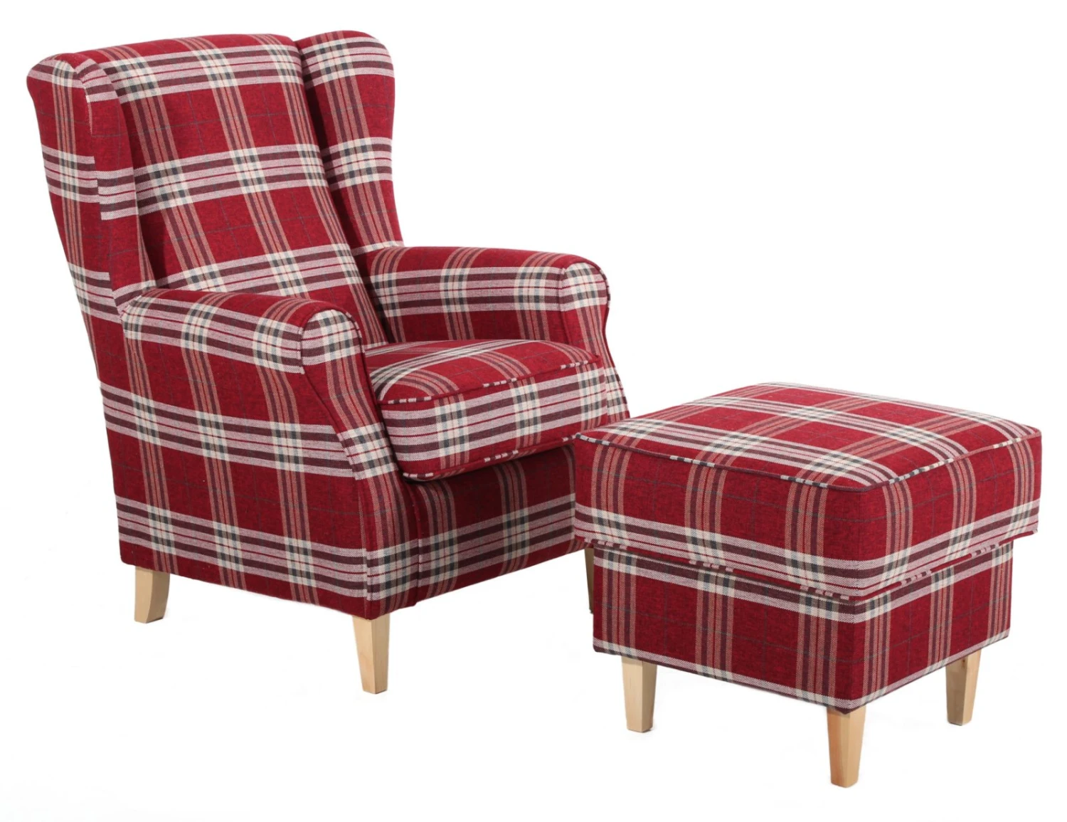 Hol dir den passenden Max Winzer Polsterhocker zu deinem Ohrensessel in deine vier Wände. Nutze ihn, um deine Beine hochzulegen oder als extra Sitzmöglichkeit für Gäste. Der Bezug ist ein Flachgewebe in Rot mit moderner Leinenstruktur und weist ein schönes kariertes Muster auf.