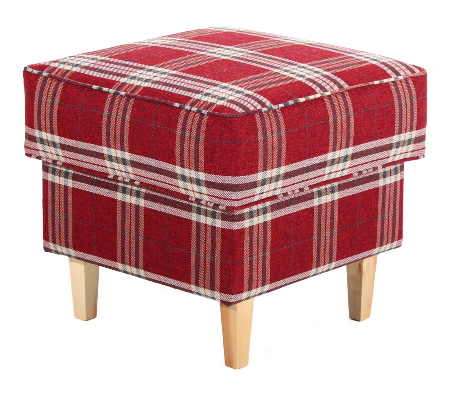 Max Winzer Polsterhocker – rot – kariert – Flachgewebe