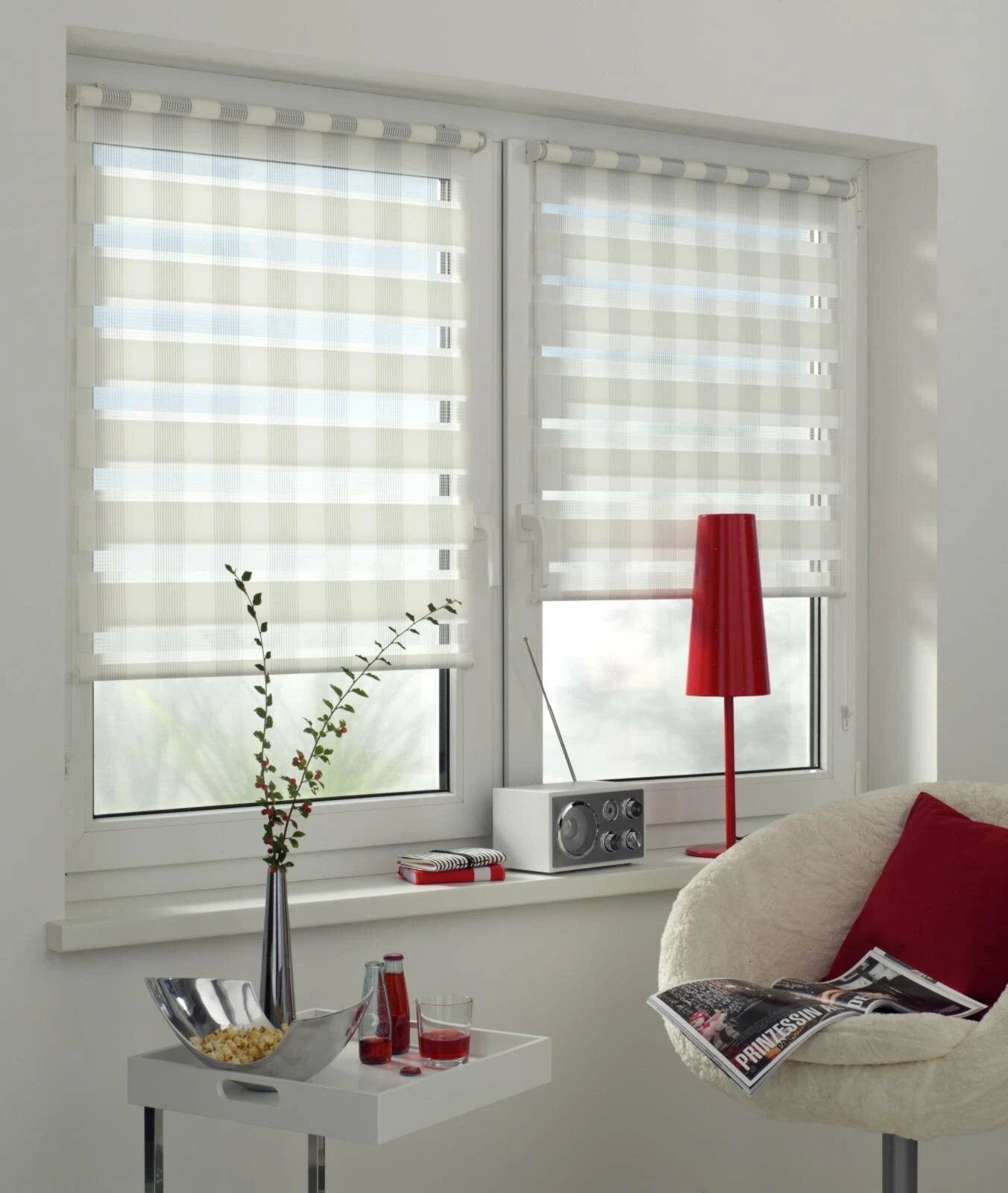 Entdecken Sie die Vielfalt unseres Doppelrollos, es besticht nicht nur durch seinen schönen Look mit weiß, kariertem Muster, sondern ist auch durch seine höhenverstellbare Funktion, die beliebige Lichtverhältnisse schafft, ein wahres Allroundtalent. Nicht zu vergessen ist die einfach Montage, bei der sie zwischen der Klebe- und Klemmfunktion wählen können.