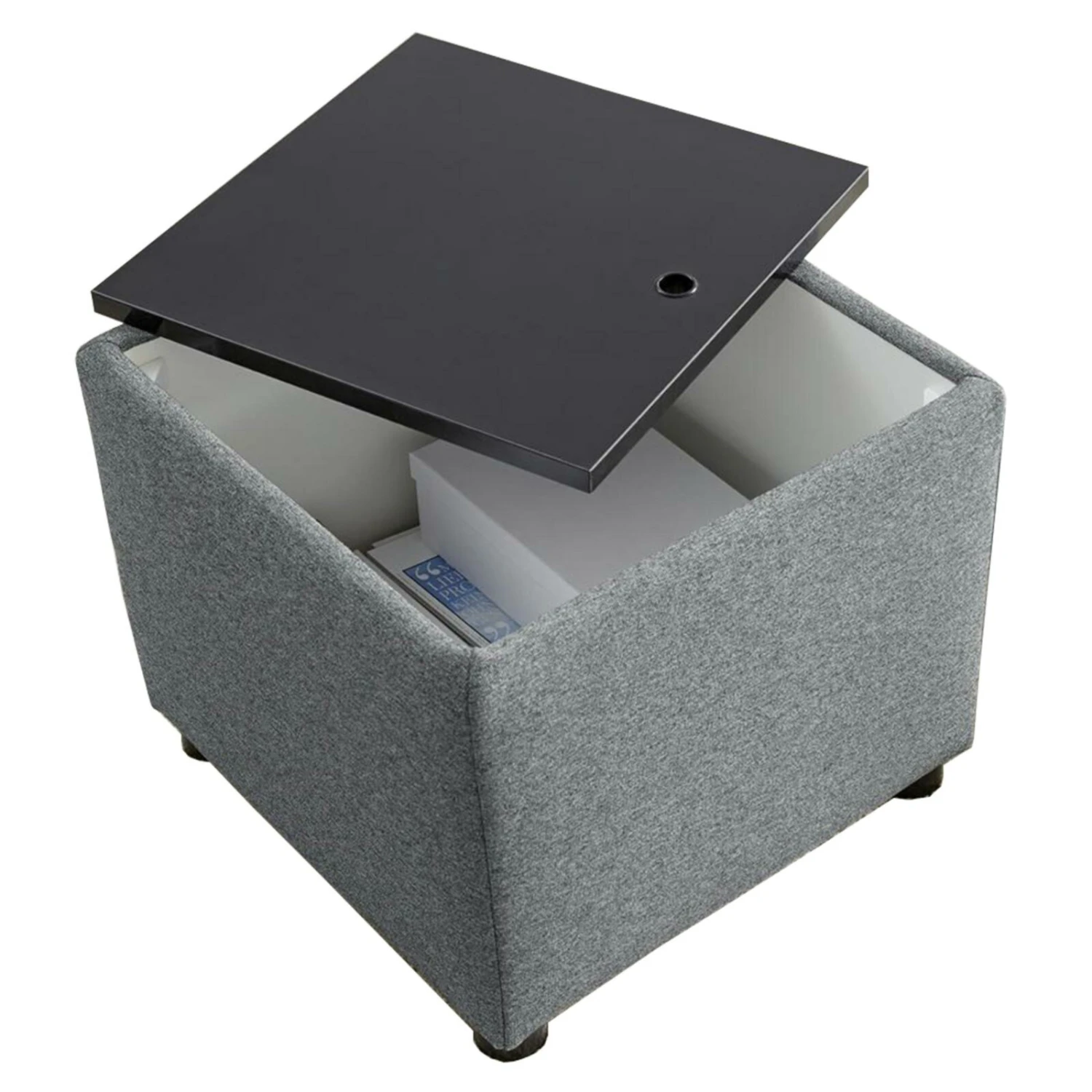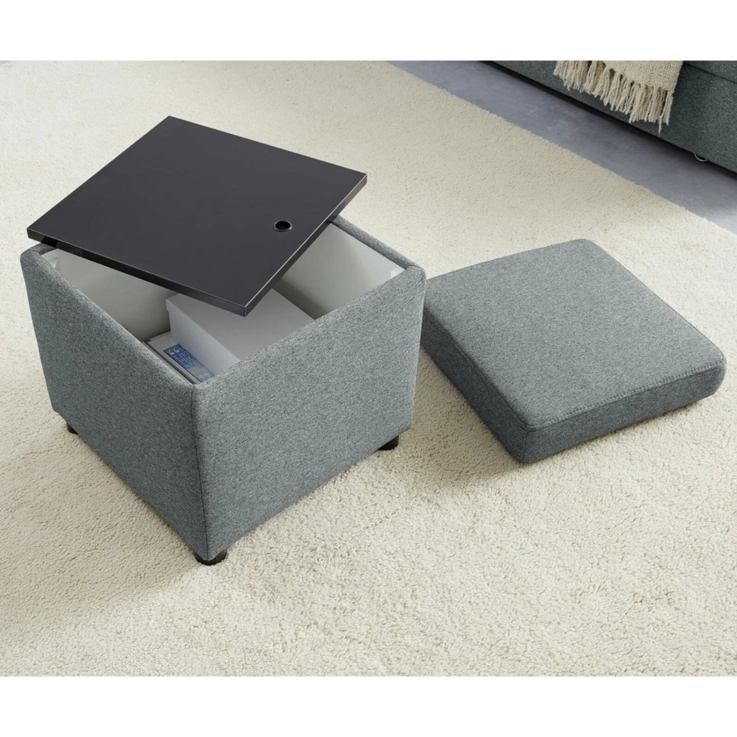 Polsterhocker – LOOKS by Wolfgang Joop – dunkelgrau – Tischfunktion