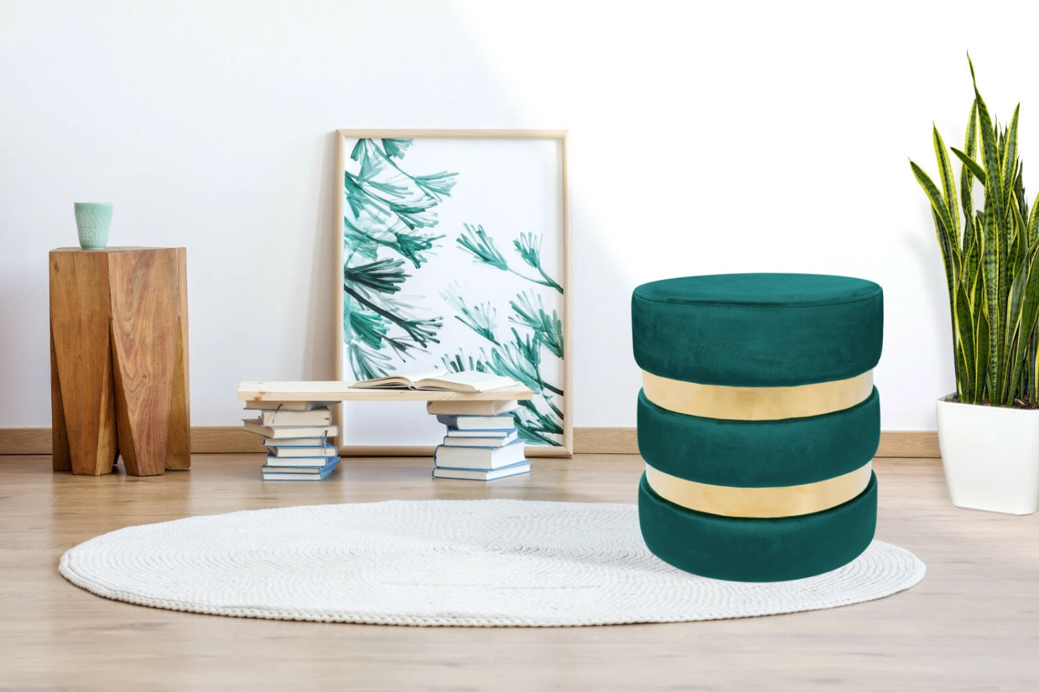 Polsterhocker NOVALIE – petrol-gold – Ø 37 cm
