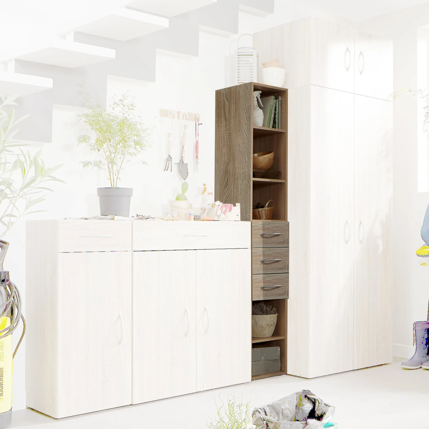 Das Schrankprogramm gibt Ihnen die Möglichkeit, Ihr eigenes Schranksystem zusammenzustellen. Ob für die Abstellkammer, für die Garage, für den Wäscheraum oder auch das Kinderzimmer, dieses Programm hilft Ihnen dabei, jeden Winkel mit nützlichem Stauraum zu füllen. Variieren Sie mit der Farbe und kombinieren Kommoden, Drehtürenschränke und Regale nach Belieben.