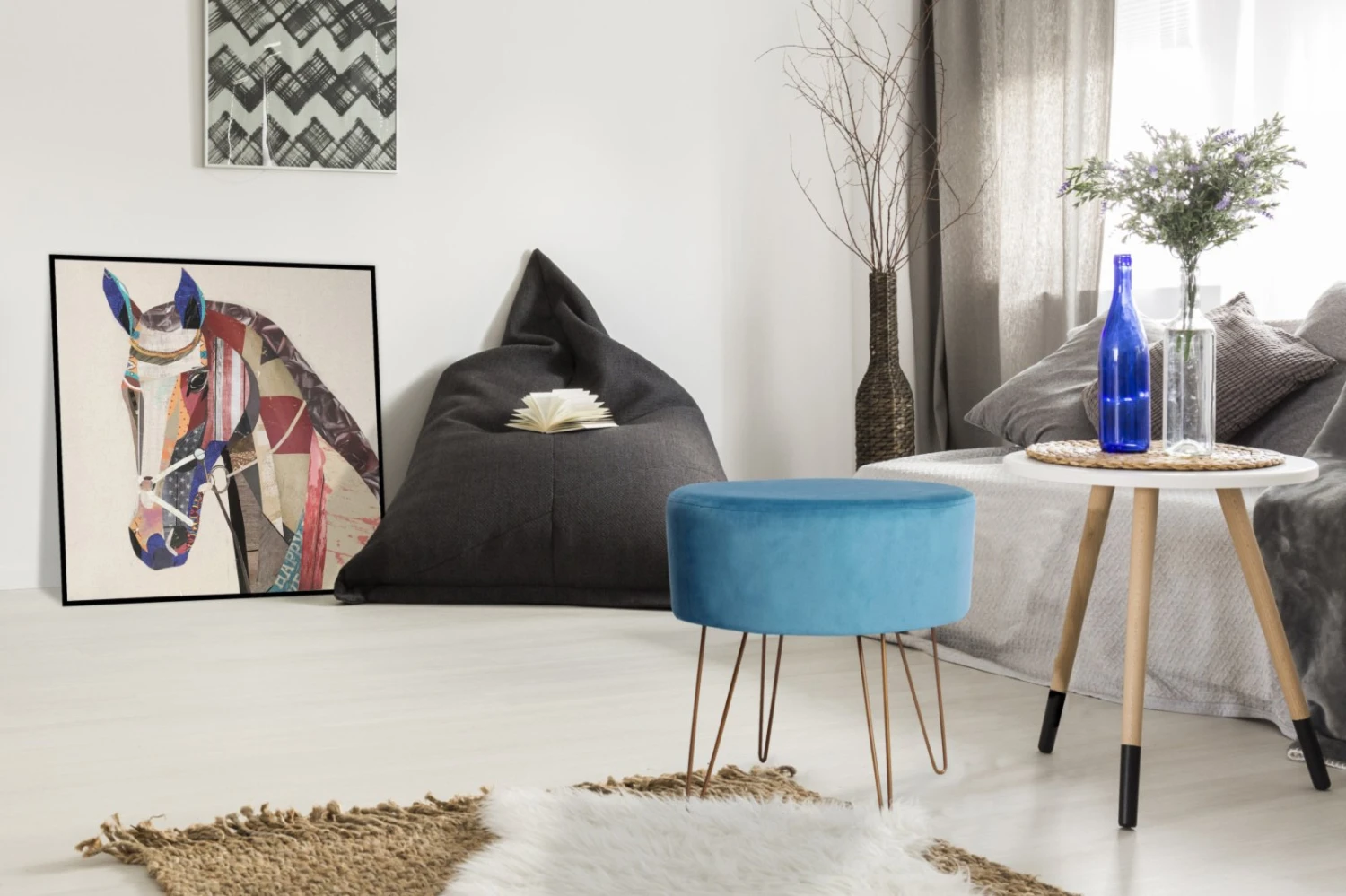 Modernes Design wird hier mit edlem Samt kombiniert. Der petrolfarbene ist ein echter Eyecatcher und wird in Ihrem Wohnraum ein tolles Highlight sein. Die Metallfüße sind leicht ausgestellt, so dass das moderne Design unterstrichen wird. Mit einem Durchmesser von ca.45 cm und einer maximalen Belastbarkeit von ca. 120 kg ist er nicht nur als Dekorationselement zu nutzen.