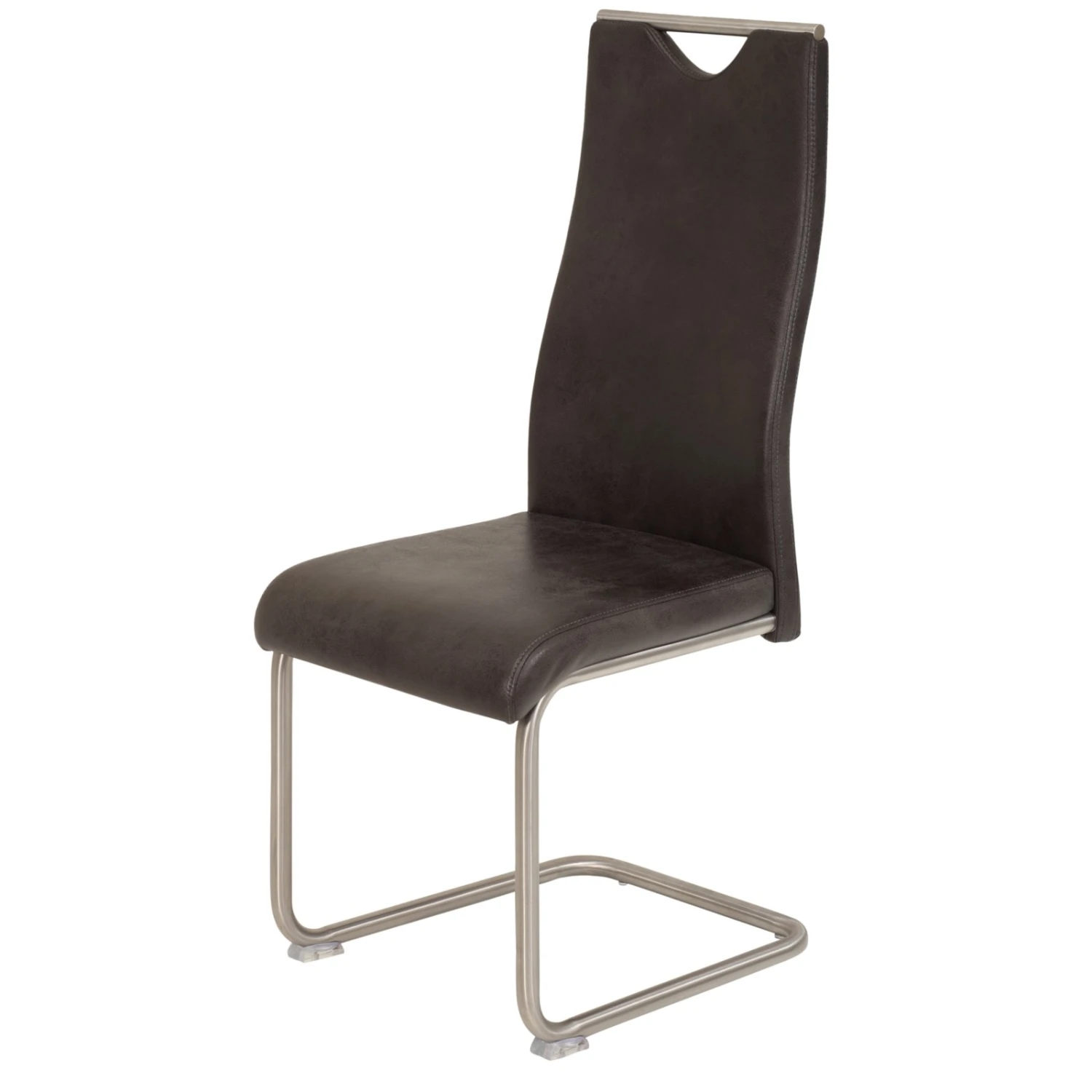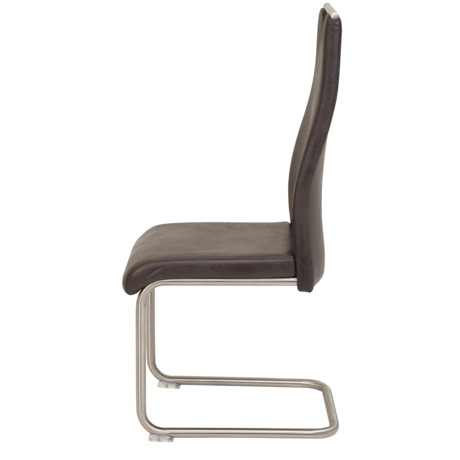 Der Schwingstuhl bringt Stil in Ihre vier Wände. Das Gestell ist aus Edelstahl Rundrohr gefertigt und passt farblich perfekt zu dem Microfaserbezug im Vintage-Look. Sitz und Rücken sind fest gepolstert und ermöglichen ein angenehmes Sitzerlebnis, so dass Sie gerne ein paar gemütliche Stunden am Esstisch verweilen werden.