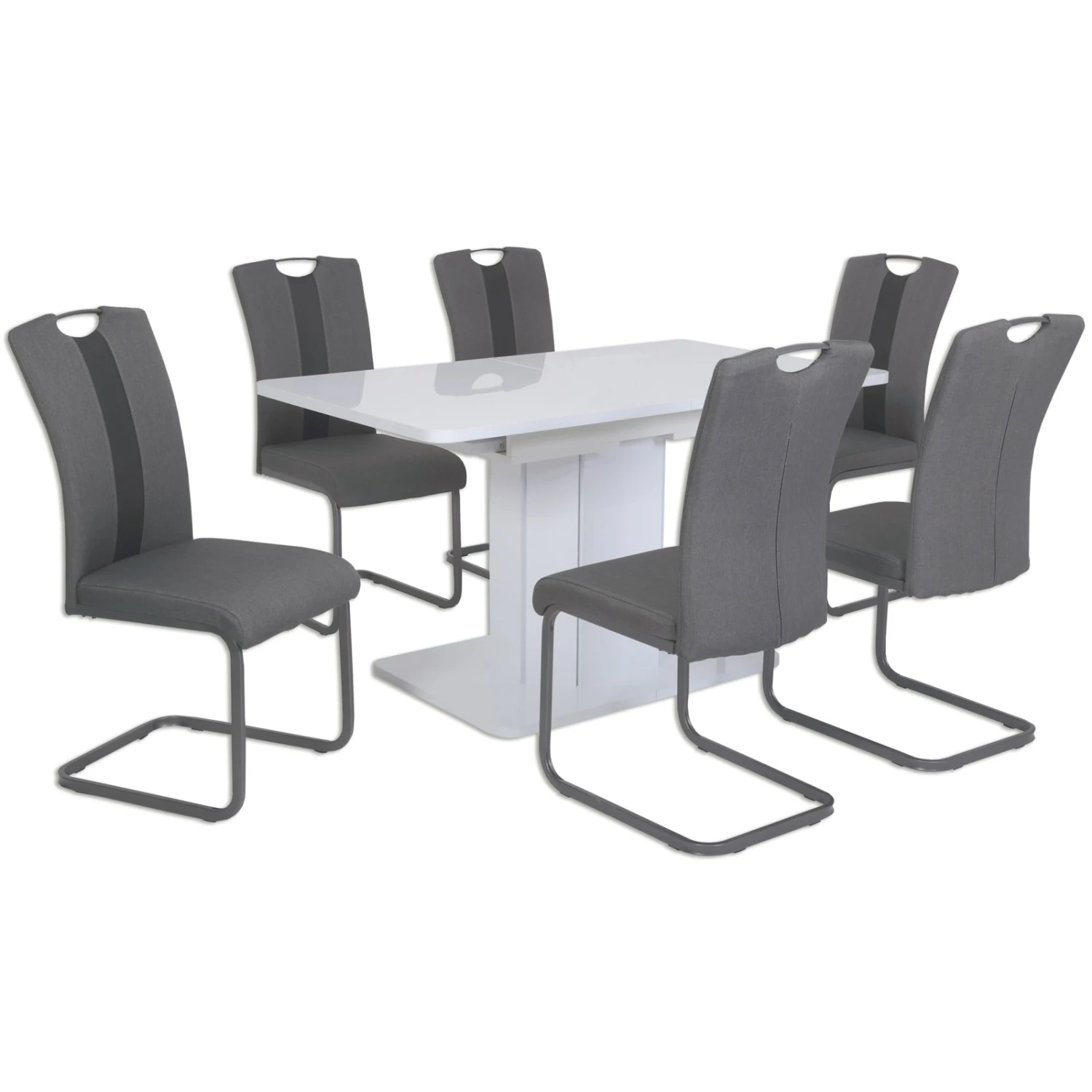 Wunderschöner Schwingstuhl mit Webstoffbezug in Grau und Anthrazit. Das Vierkant-Gestell besteht aus pulverbeschichtetem Metall und sorgt für einen stabilen Stand. Sitz und Rücken sind fest gepolstert und bieten somit einen bequemen Sitzkomfort.