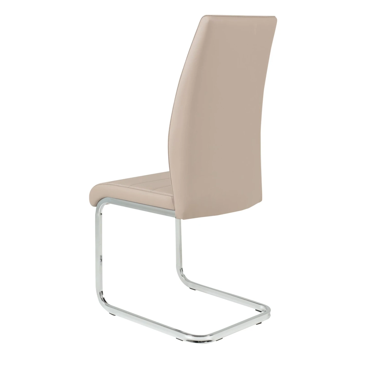 Wunderschöner Schwingstuhl mit Lederoptik-Bezug in Cappuccino. Das Vierkant-Gestell besteht aus verchromtem Metall und sorgt für einen stabilen Stand. Sitz und Rücken sind fest gepolstert und bieten somit einen bequemen Sitzkomfort.