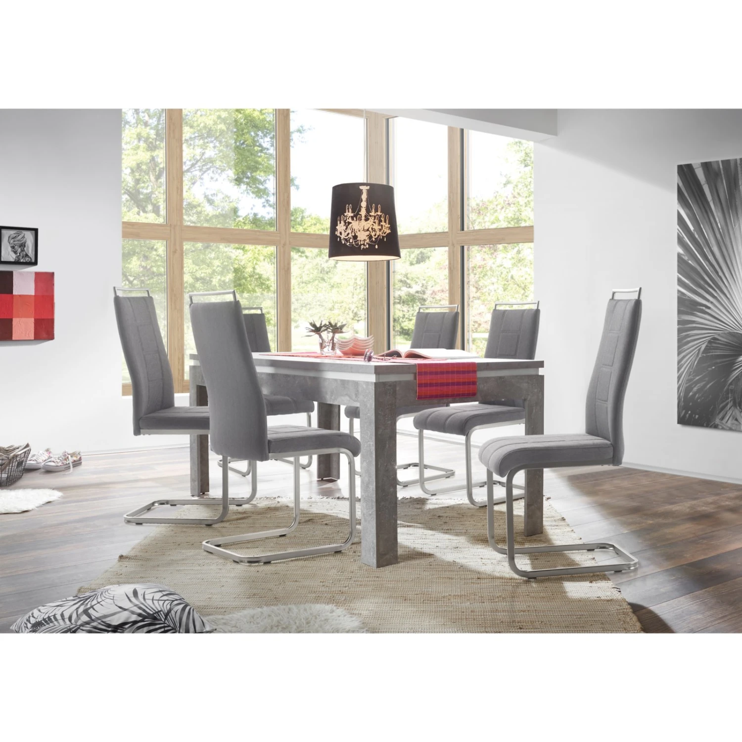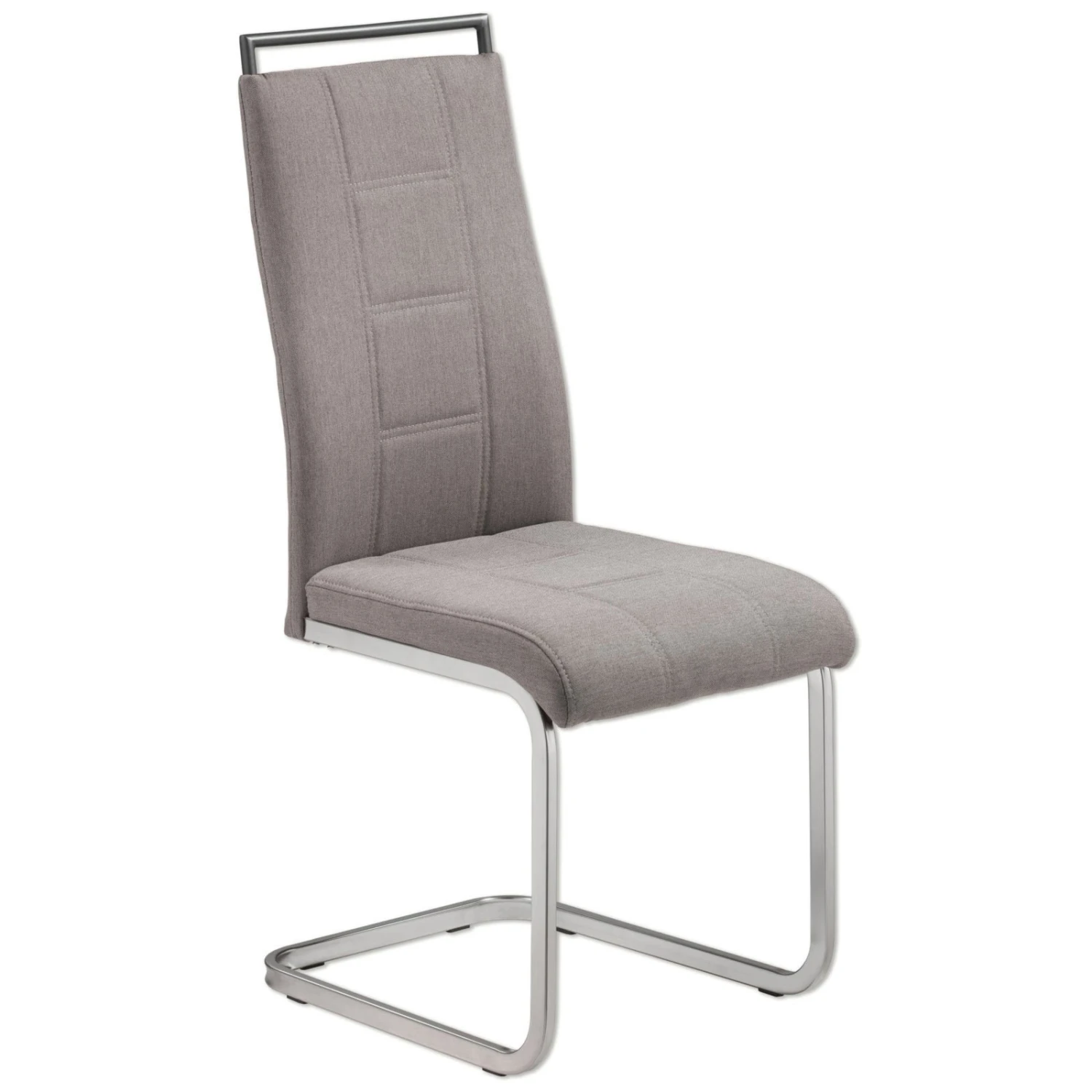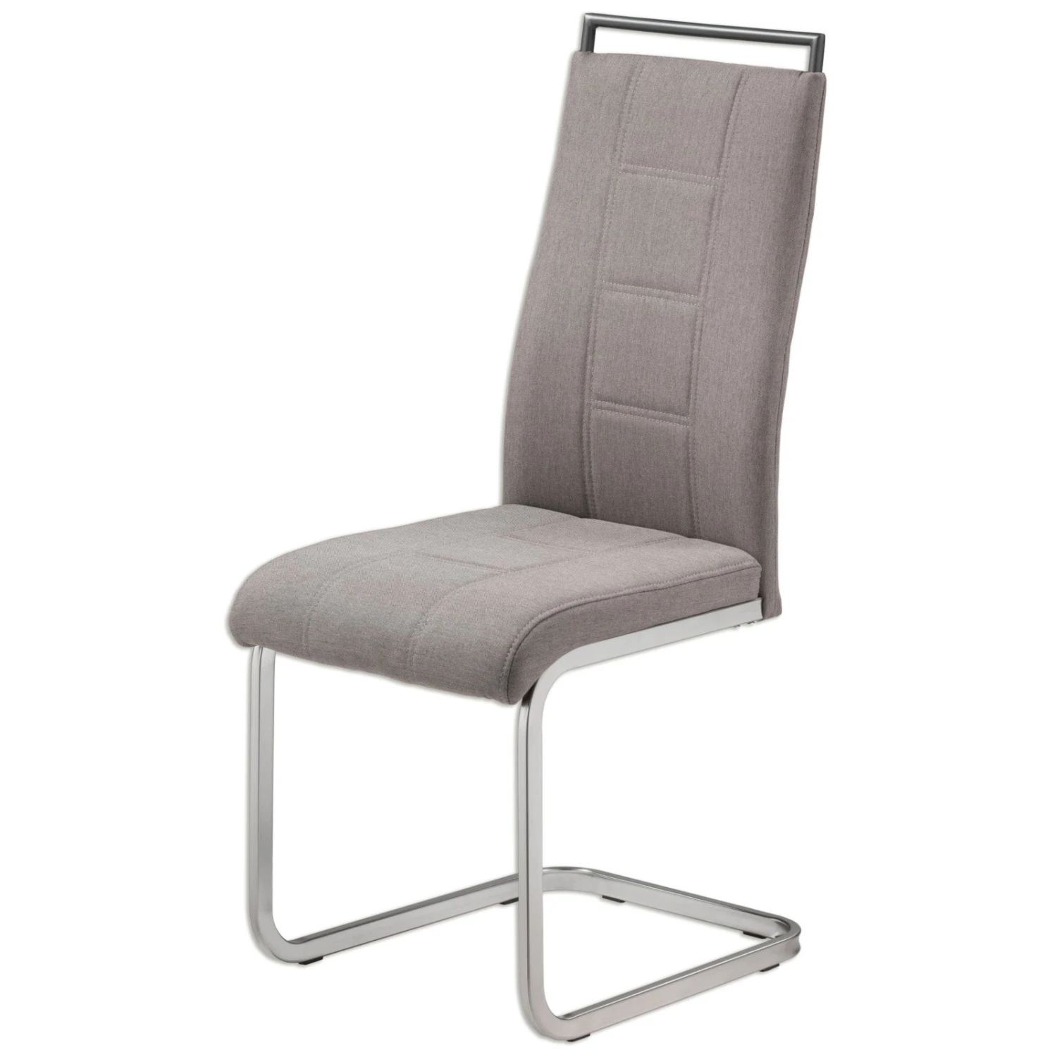 Wunderschöner Schwingstuhl mit grauem Webstoffbezug. Das Vierkant-Gestell besteht aus Metall in Edelstahloptik und sorgt für einen stabilen Stand. Sitz und Rücken sind fest gepolstert und bieten somit einen bequemen Sitzkomfort.